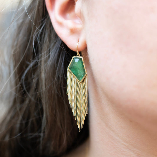 Emerald Gold Tassel Earrings