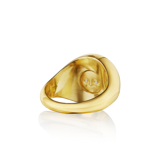 Small Gold Moonface Signet Ring