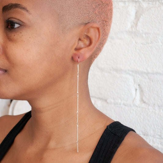 Long Gold Cast Line Earrings
