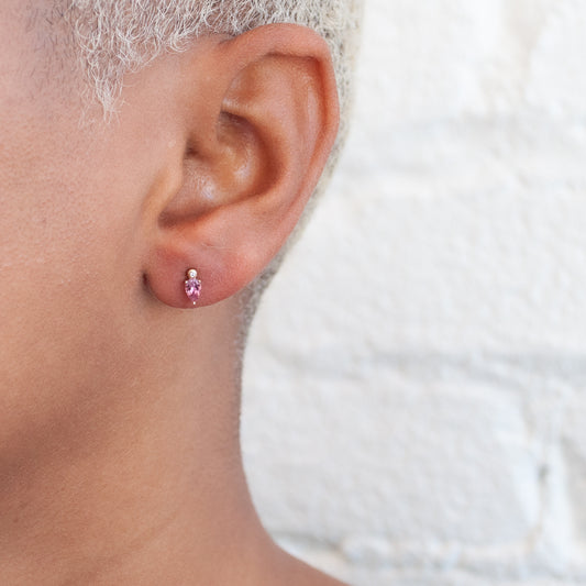 Pink Tourmaline Droplet Studs