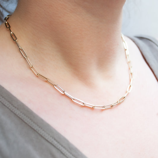 - ELONGATED CABLE CHAIN by ESQUELETO ESSENTIALS: A 14k yellow gold chain with longer, looser links