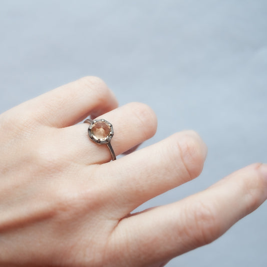 Champagne Quartz Silver Ring