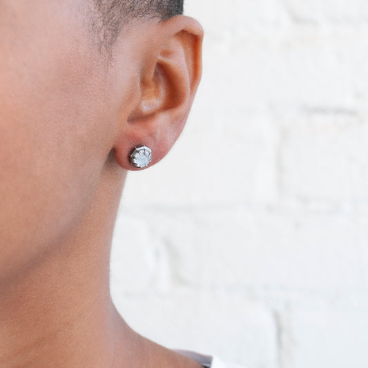 Misty Gray Diamond Octagon Studs
