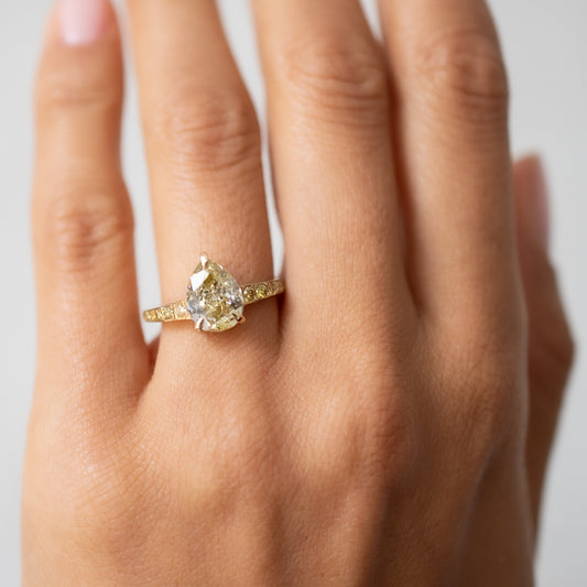 - Diamond Totem Ring by CELINE D'AOUST: Clean, angular lines of white diamonds set in 14k yellow gold