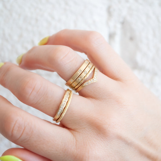 - Champagne Diamond Eternity Band by LAUREN WOLF JEWELRY: Thick, handcrafted 14k yellow gold band inlaid with champagne rose-cut diamonds