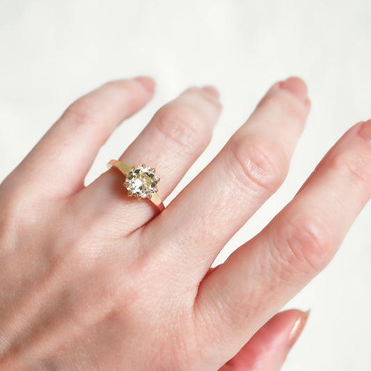 - Champagne Diamond Eternity Band by LAUREN WOLF JEWELRY: Thick, handcrafted 14k yellow gold band inlaid with champagne rose-cut diamonds