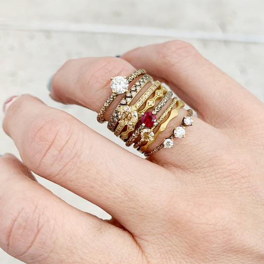 At ESQUELETO, handcrafted rings meet the luxury of big-box jewelers with a variety of stones, band materials, and price points to choose from. Our diverse collection of rings spans a wide price range, with options available from under $100 to beyond $20,000 so that you can discover the ideal handmade ring to complement your style and preferences.