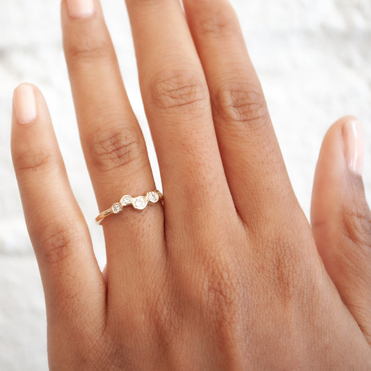 You’ll find sculptural yet edgy engagement rings in the collection designed by Ellis Mhairi Cameron