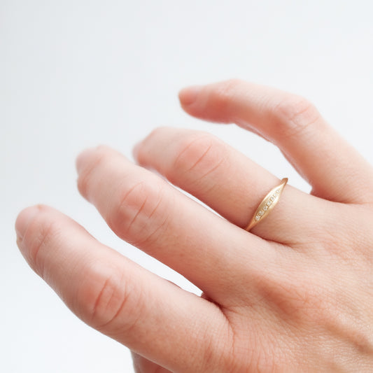 - Champagne Diamond Eternity Band by LAUREN WOLF JEWELRY: Thick, handcrafted 14k yellow gold band inlaid with champagne rose-cut diamonds