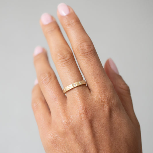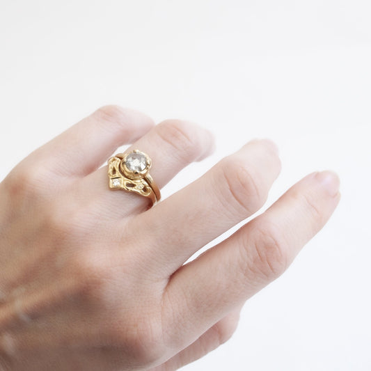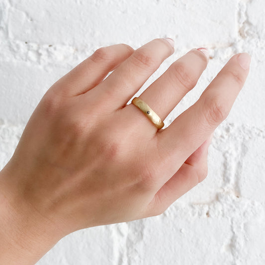 - Champagne Diamond Eternity Band by LAUREN WOLF JEWELRY: Thick, handcrafted 14k yellow gold band inlaid with champagne rose-cut diamonds