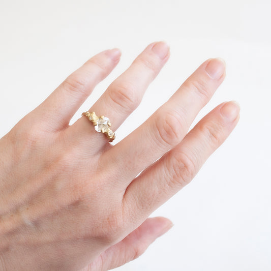 You’ll find sculptural yet edgy engagement rings in the collection designed by Ellis Mhairi Cameron