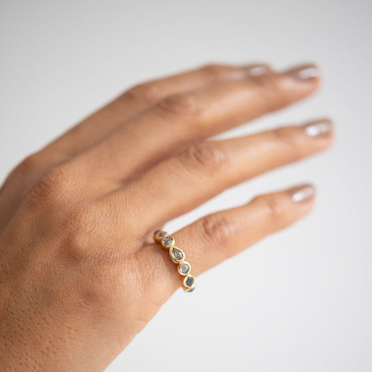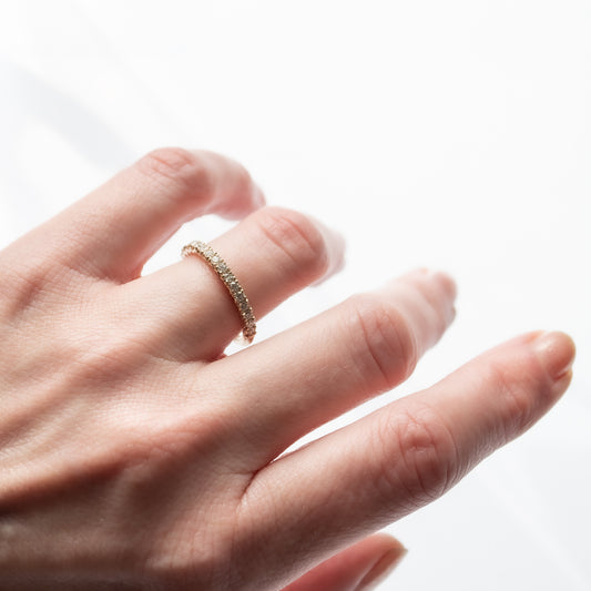 - Champagne Diamond Eternity Band by LAUREN WOLF JEWELRY: Thick, handcrafted 14k yellow gold band inlaid with champagne rose-cut diamonds
