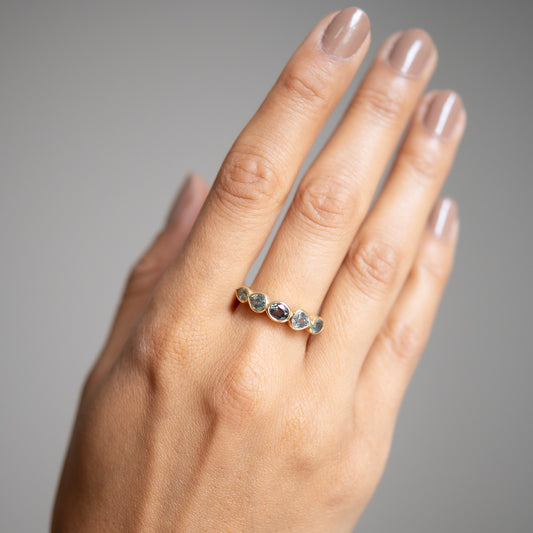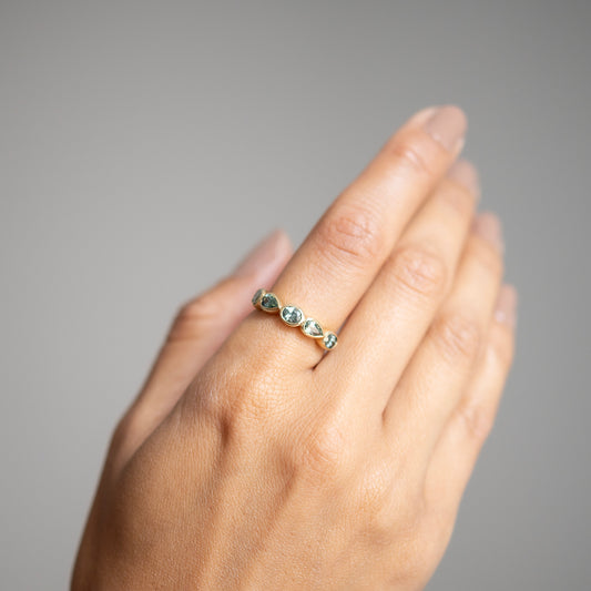- Green Diamond Eternity Band by MICHAEL SPIRITO: 18k gold band set with clear green rose-cut diamonds