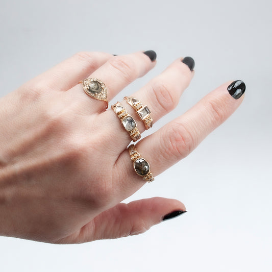 At ESQUELETO, handcrafted rings meet the luxury of big-box jewelers with a variety of stones, band materials, and price points to choose from. Our diverse collection of rings spans a wide price range, with options available from under $100 to beyond $20,000 so that you can discover the ideal handmade ring to complement your style and preferences.
