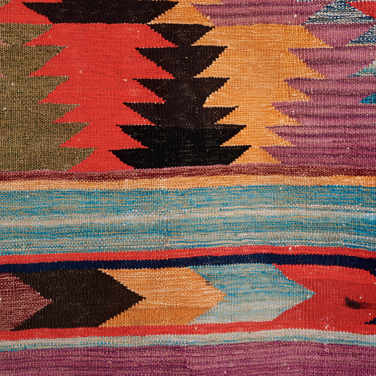 Our Vintage Red & Orange Abstract Rug contains organic diamond shapes in abstract patterns that attract the wandering eye. The gorgeous sunset-like hues of this rug can complement any room.