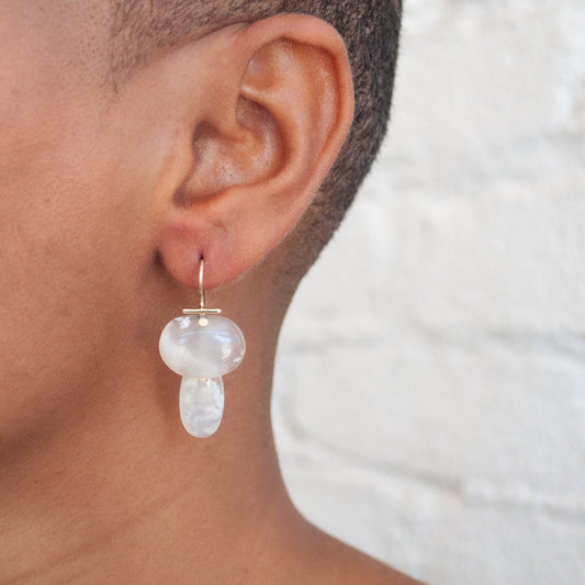 Layered Lingzhi Kiku White Agate Earrings