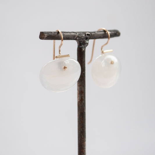 Medium Light Agate Shield Kiku Earrings