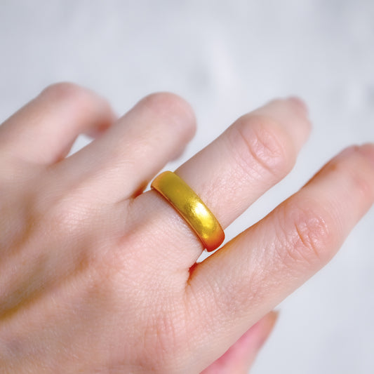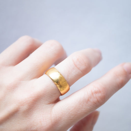 LXCI Molten Gold Band by ELLIS MHAIRI CAMERON: A wide molten gold wedding band with a timeless look and hand-forged texture