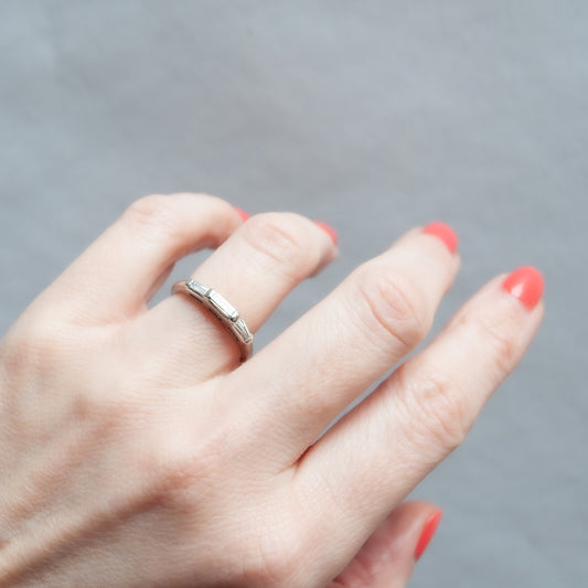 Gracia White Diamond Ring by LADHA: Timeless white diamonds set in a slightly angled 14k yellow gold wedding band