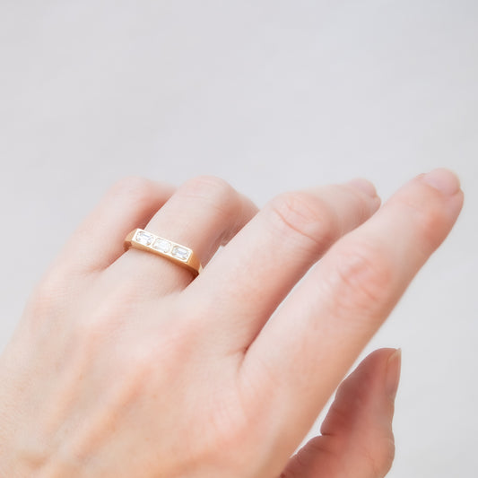 Gracia White Diamond Ring by LADHA: Timeless white diamonds set in a slightly angled 14k yellow gold wedding band