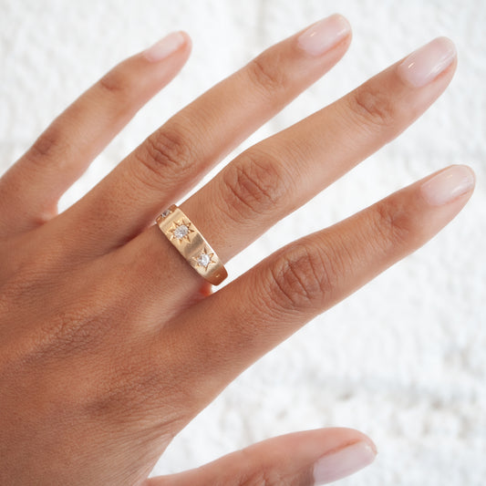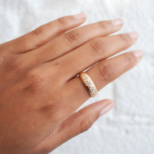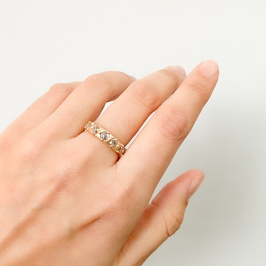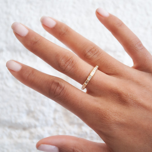 Noemi Scattered Diamond Band by LADHA: A ring of pristine white diamonds surrounding a simple yet textured 14k yellow gold band