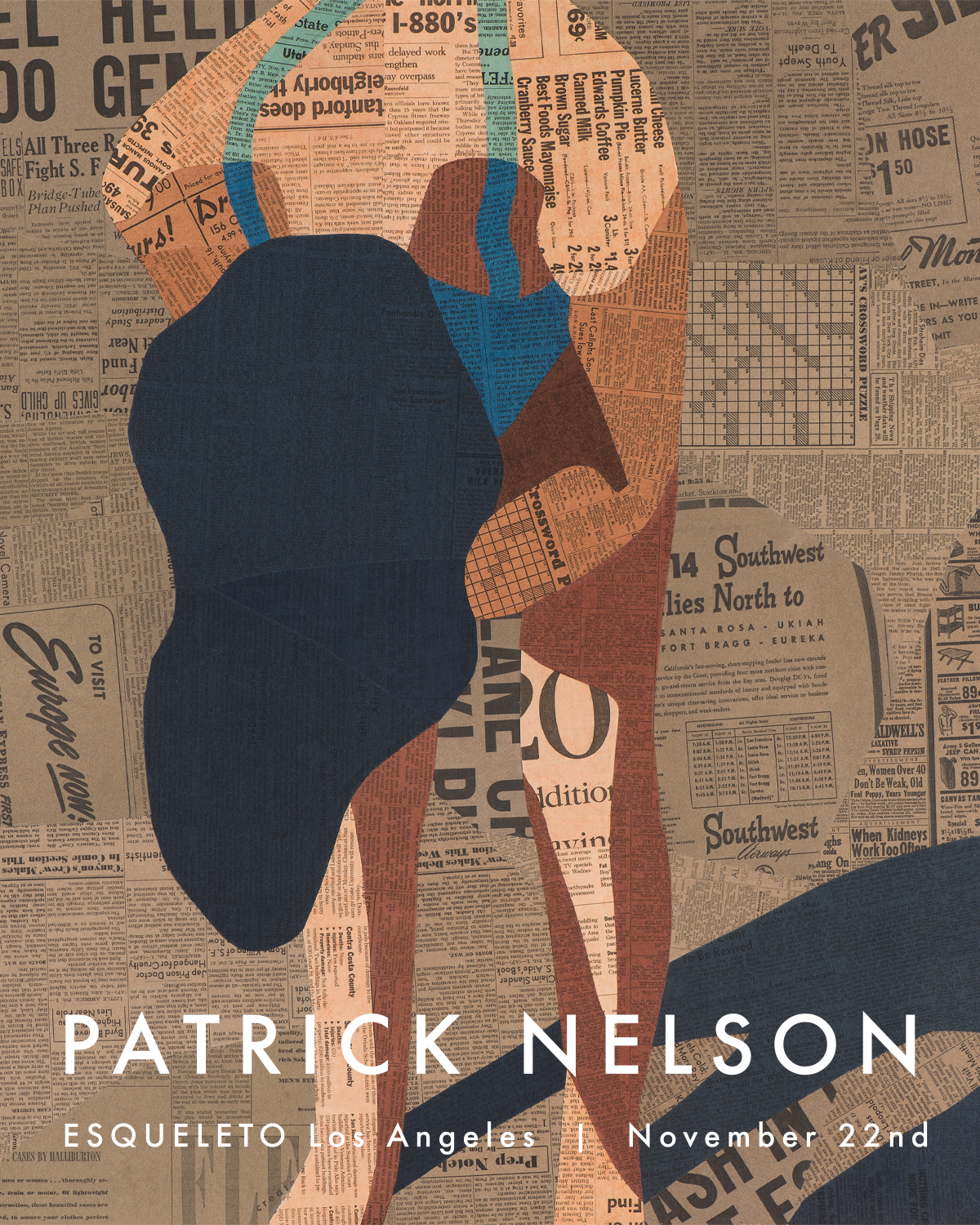 CLICK FOR MORE INFOPatrick Nelson’s years of experience working in the worlds of branding and advertising inform his fine art practice. Nelson constructs graphic, timeless images from hand-stained newspaper, juxtaposing modern designs with retro content. The lively graphics characteristic of vintage print-media balance the reductive abstraction of the subject matter. Recurring themes of history, retro nostalgia, and a magnetic attraction to water make up his extensive body of work.