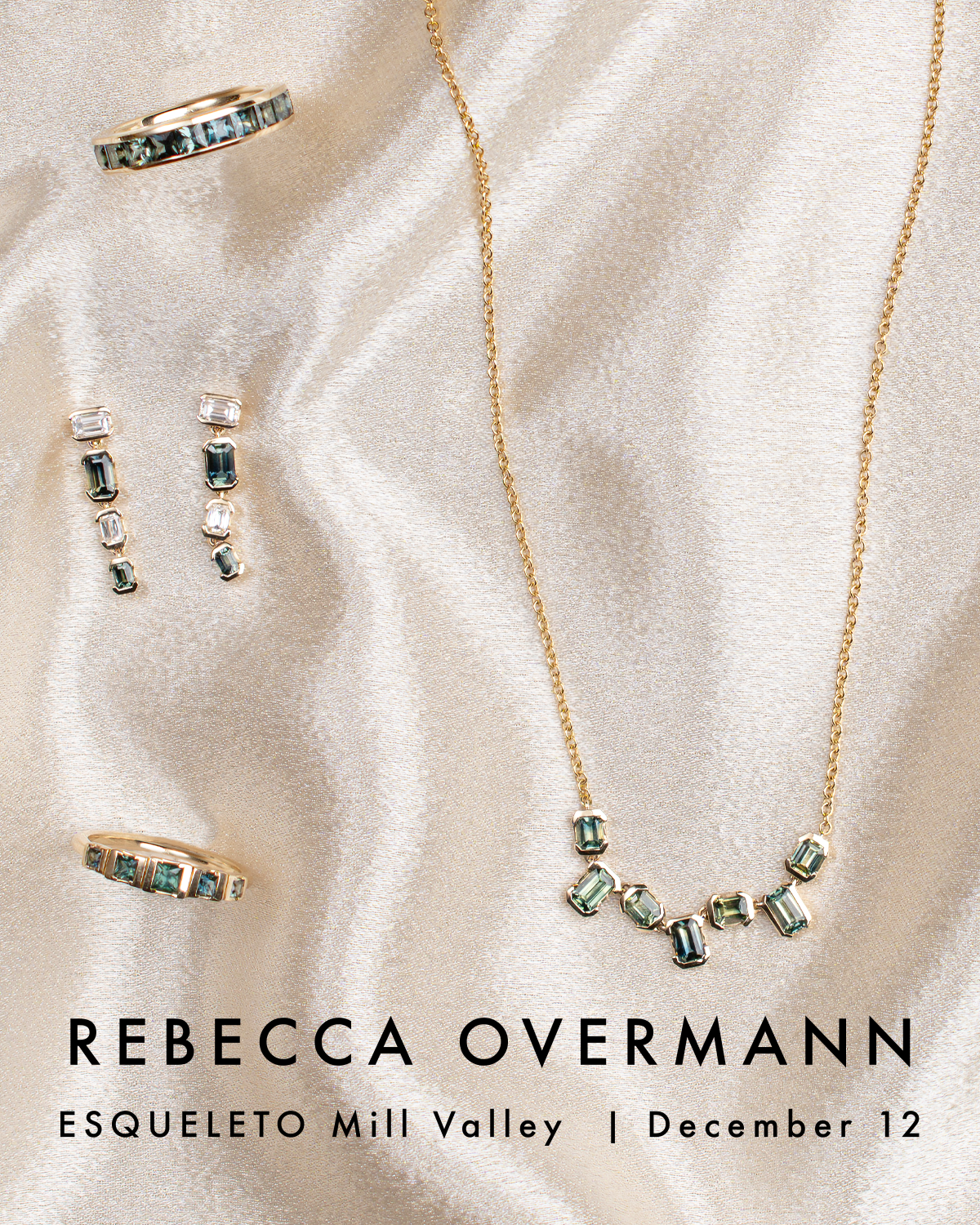 CLICK FOR MORE INFOWe are so excited to host one of the Bay Area's finest jewelers, Rebecca Overmann, at our Mill Valley location for a holiday season trunk show! Rebecca will be here in person to show off her amazing collection of bespoke bridal, hand carved wedding bands, nature-inspired diamond jewelry, and a gorgeous array of one-of-a-kind rings. Come by to meet the maker and sip n' shop with us!