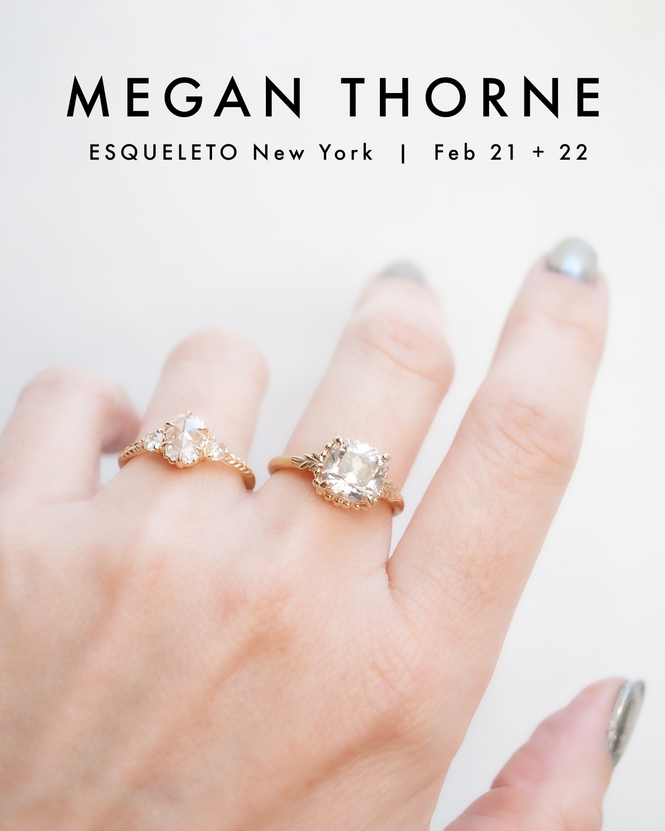 CLICK FOR MORE INFOWe're thrilled to welcome Texas-based Megan Thorne to our NYC store for a weekend-long pop up shop! Come explore Megan's whimsical, feminine and floral fine jewelry collection. Meet the designer, sip n' shop, and be the first to view her latest bridal styles and one-of-a-kind creations.