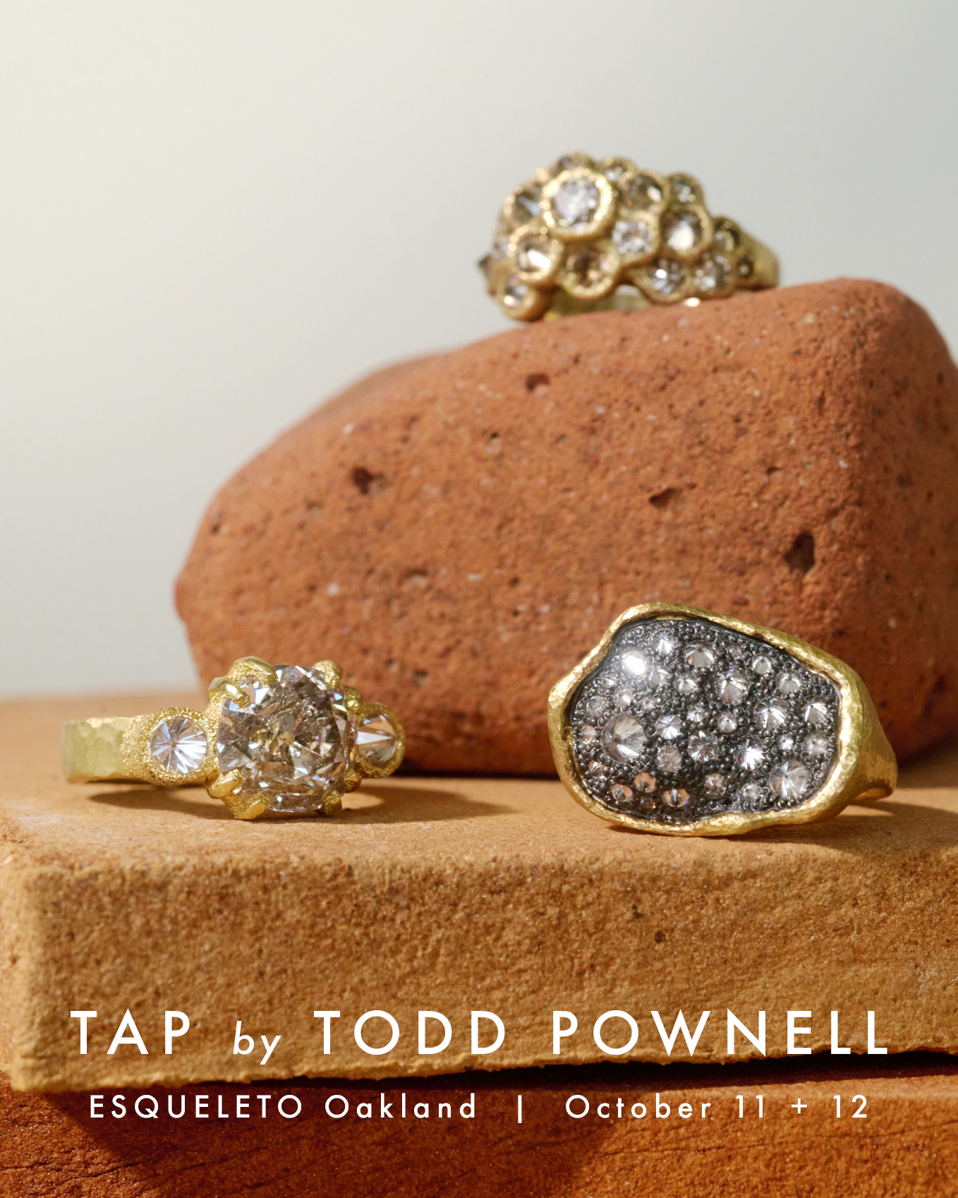 CLICK FOR MORE INFOWe are thrilled to host Todd of TAP by TODD POWNELL for a weekend trunk show in our Oakland location! Stop in to meet the artist and shop the full TAP jewelry line. We'll have many one-of-a-kind gems and gorgeous bridal pieces, all featuring Todd's signature rough-luxe textures, organic designs, blackened metals, and ethically-sourced natural diamonds, all weekend long.