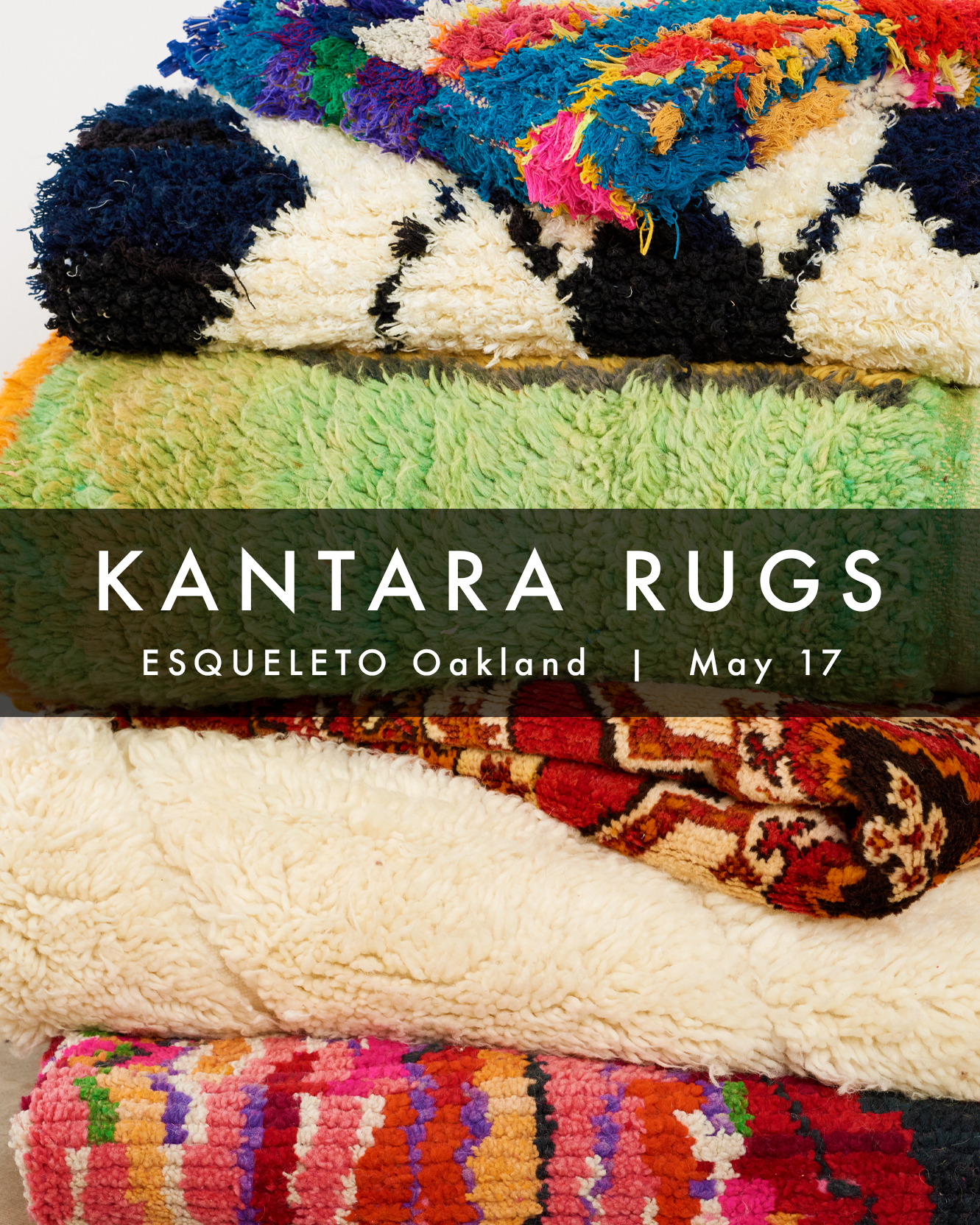 CLICK FOR MORE INFOIt's a Kantara Rugs takeover! Kantara founder Alia Kate will be taking over our Oakland shop with her gorgeous, fair trade Moroccan rugs. Join us all day Sunday to learn more about Kantara's work with women's weaving cooperatives, and to shop a huge selection of handmade rugs in varying sizes, patterns and hues. We'll have our own little Souk des Tapis right here in Oakland!