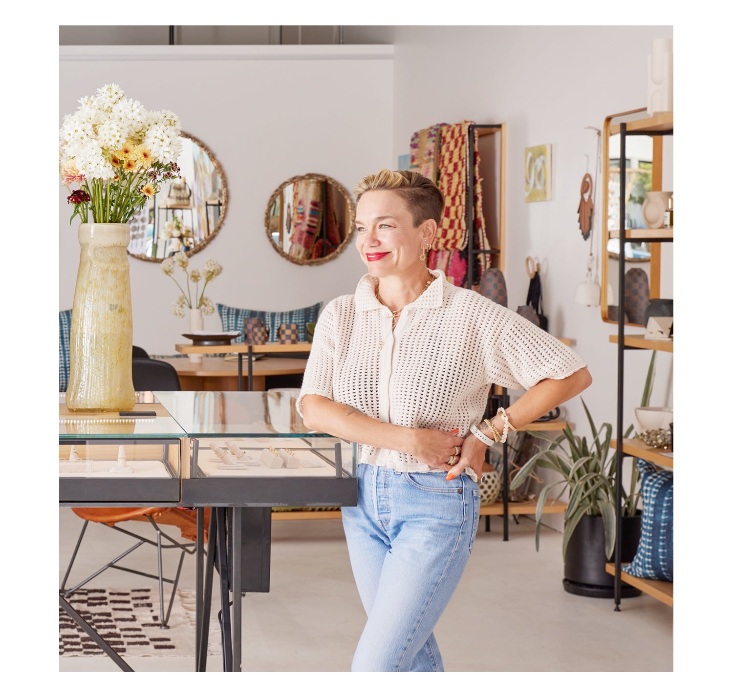 More than jewelry sparkles at Esqueleto. Inside a tiny sun-drenched showroom, Wolf has assembled an eye-catching array of distinctive handcrafted items including custom jewelry, art, decorative objects and colorful vintage kilims.