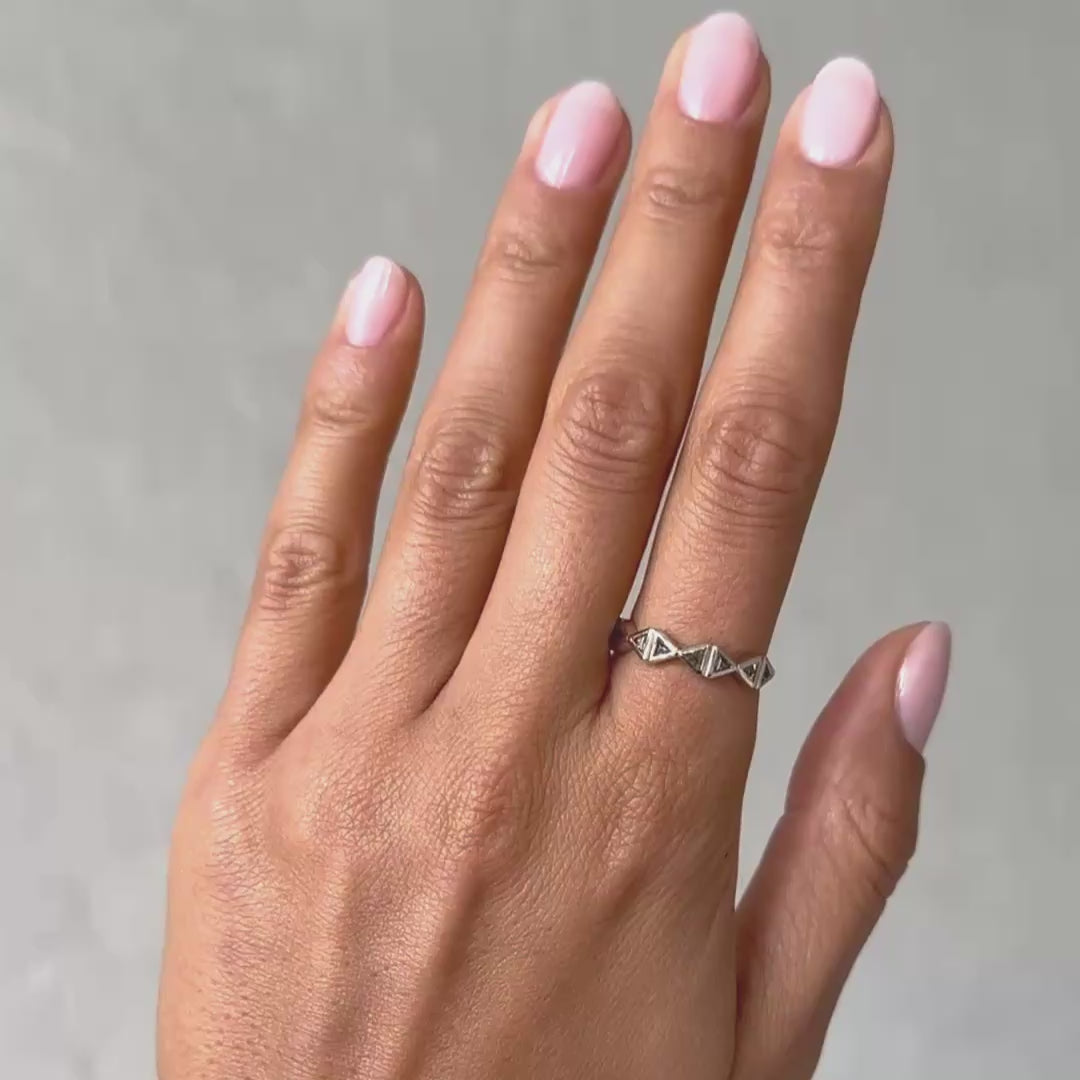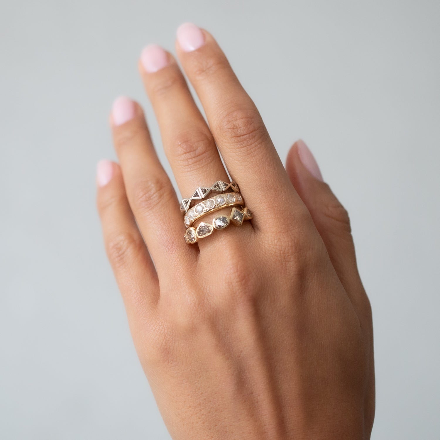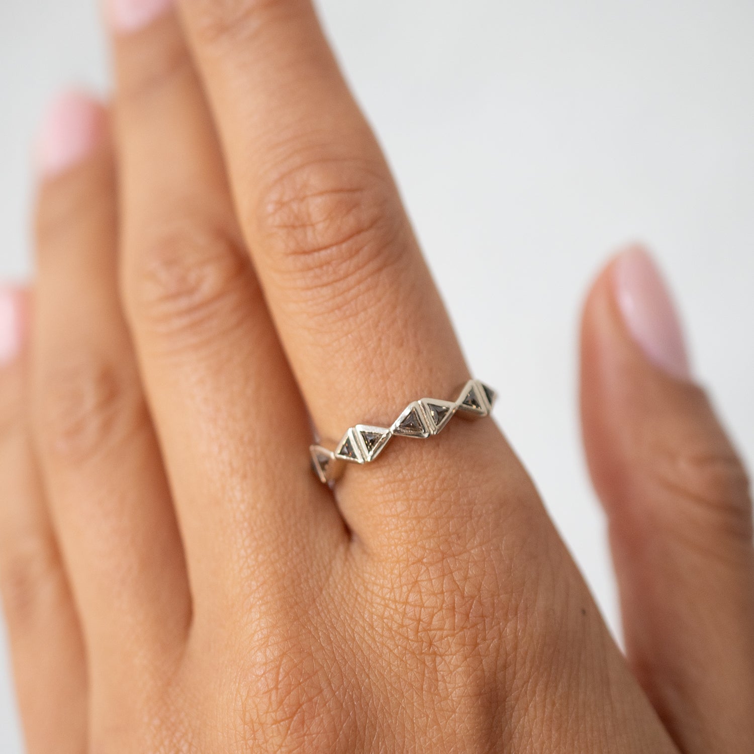 Trillion-shaped diamonds make this ring by Lauren Wolf a geometric stunner. This versatile, one-of-a-kind ring is perfect for stacking, yet stunning enough to wear on its own.