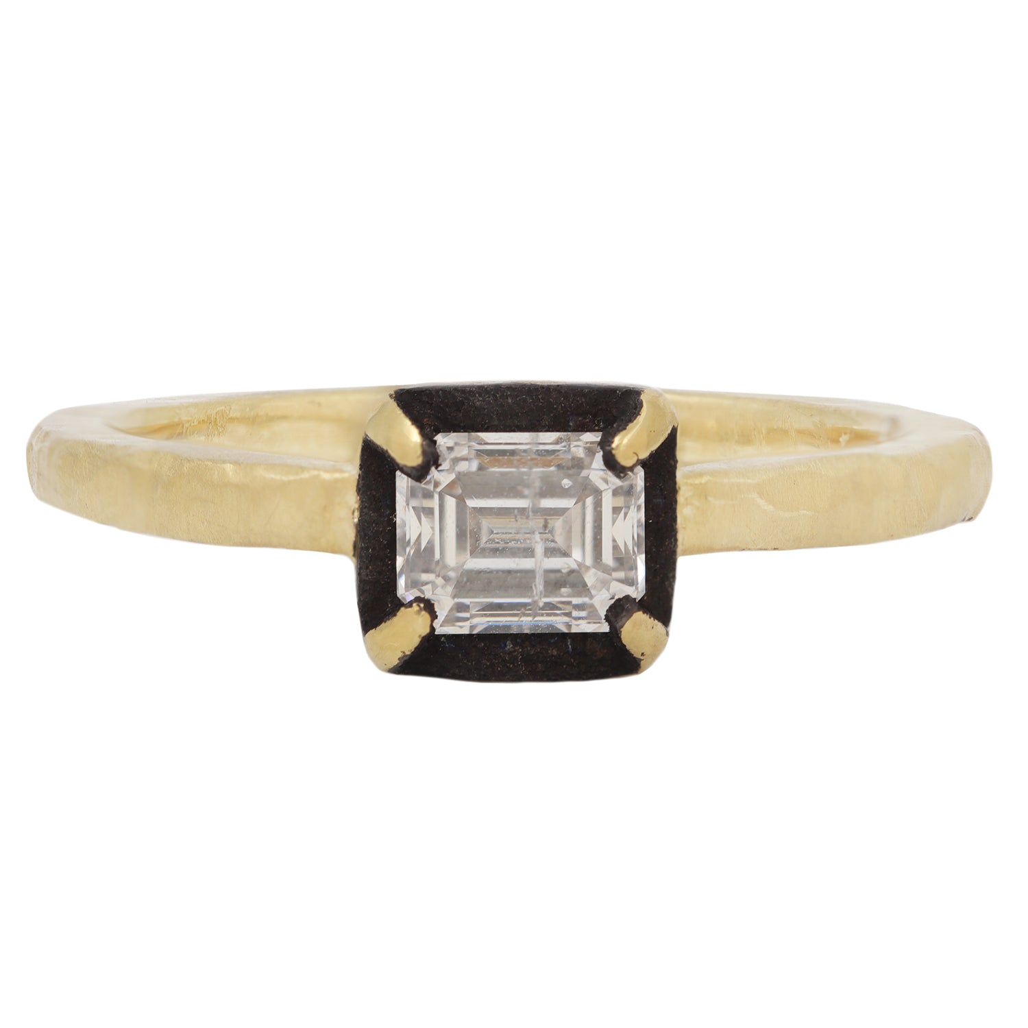 Stones: .70ct White Emerald Cut DiamondMetal: 18k Yellow Gold, Darkened 14k White Gold