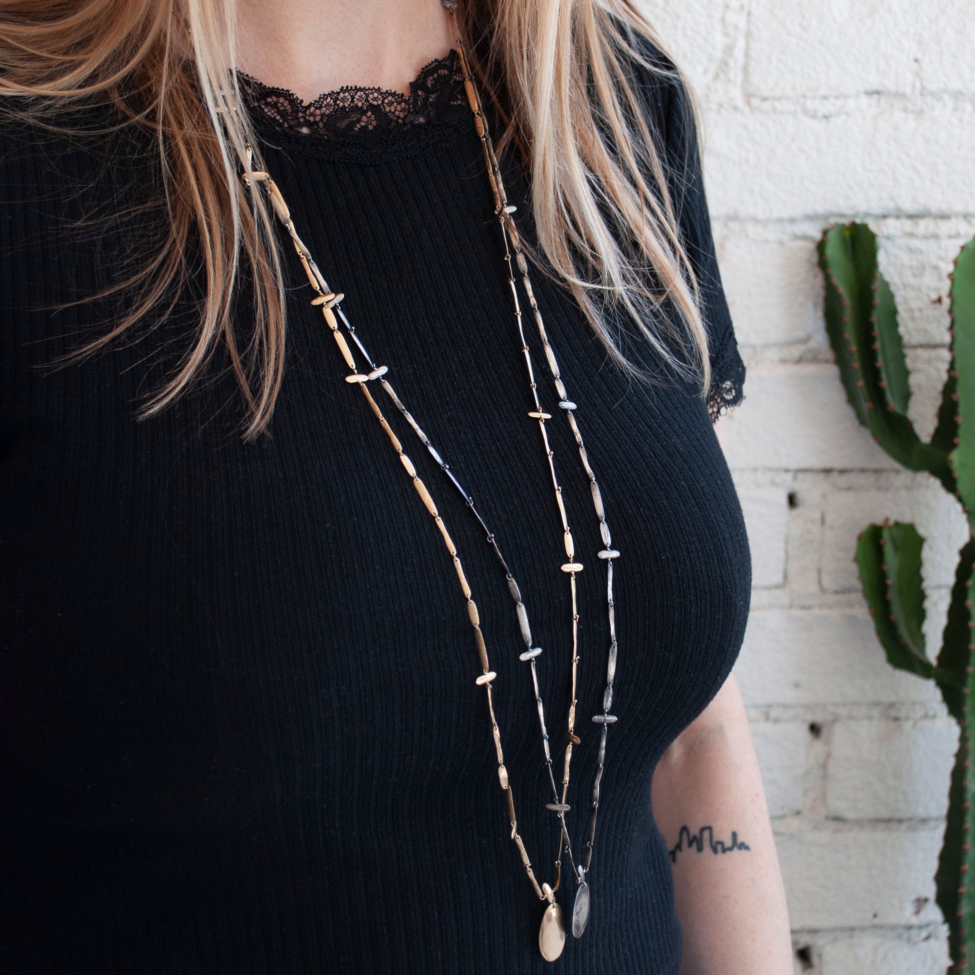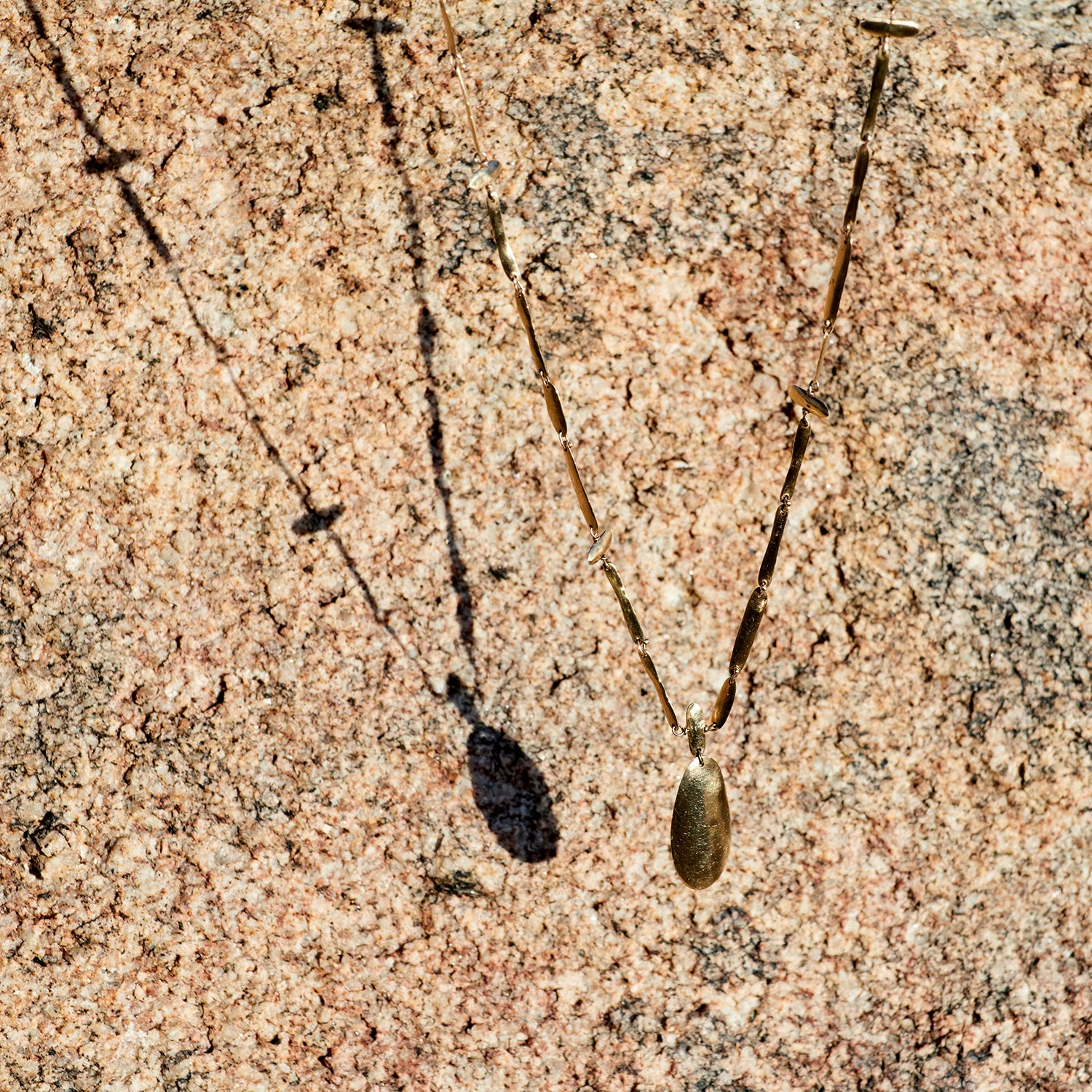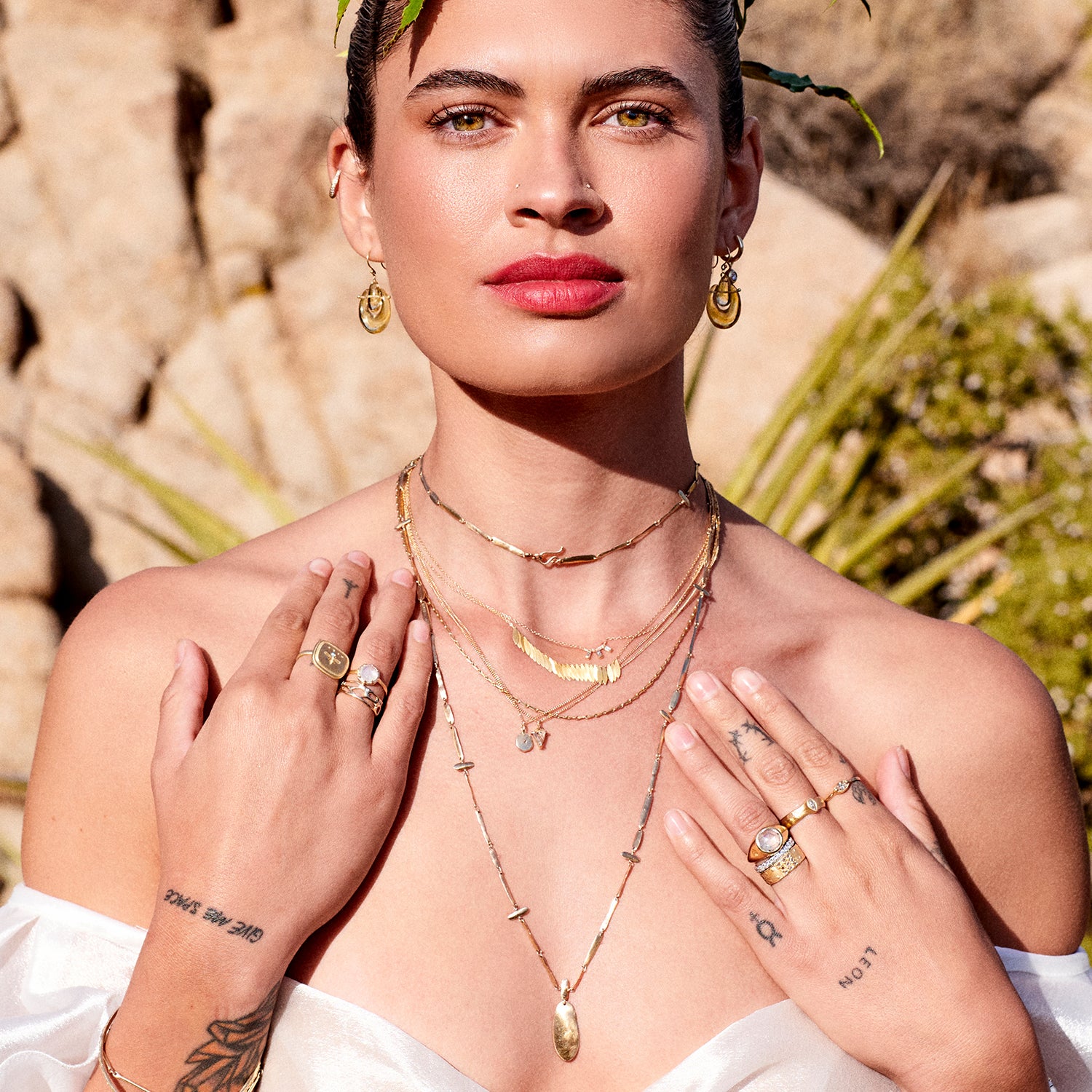 Edgy meets spiritual for an authentic look you can wear everyday. This TENTHOUSANDTHINGS necklace is entirely handmade of warm, gold links that lie flat and a shining oval pendant. Looks great layered, doubled up, or all on its own.