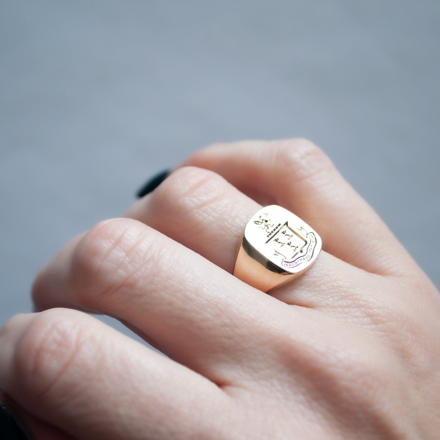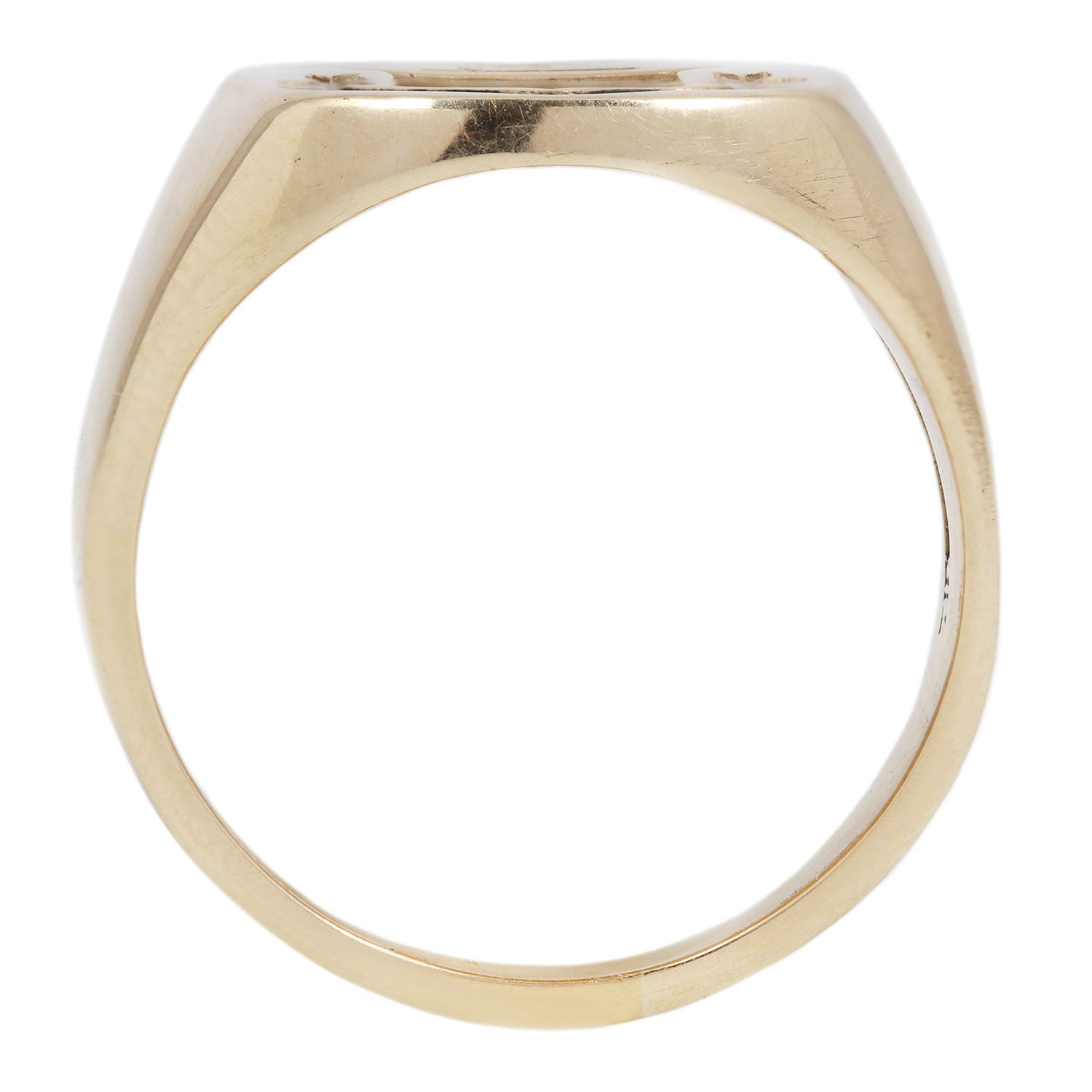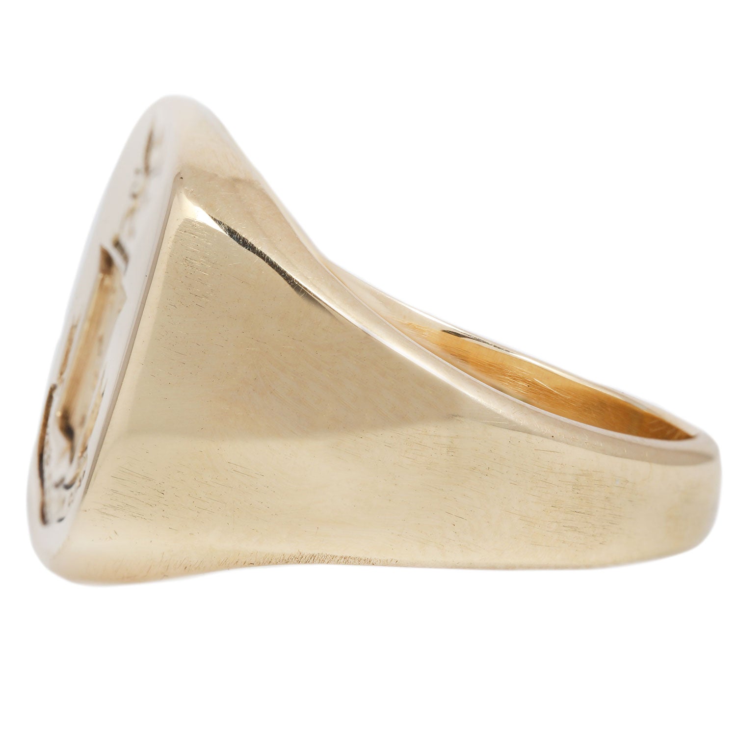 Metal: 14k Yellow GoldMeasurements: Signet length: 12.7mm, Signet width: 14.3mm, Signet height: 1.7mm, Band width: 3.6mm