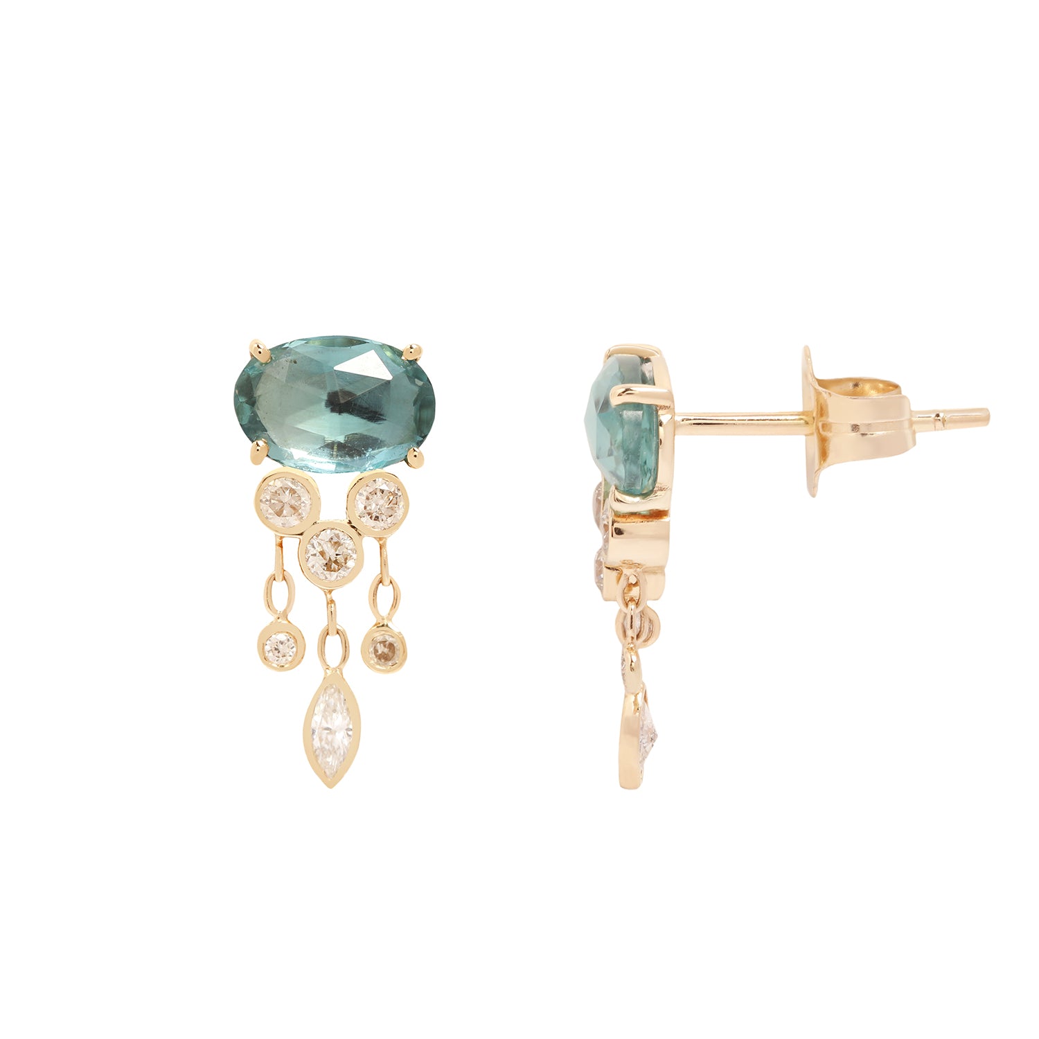 Teal Tourmaline & Diamond Jellyfish Earrings