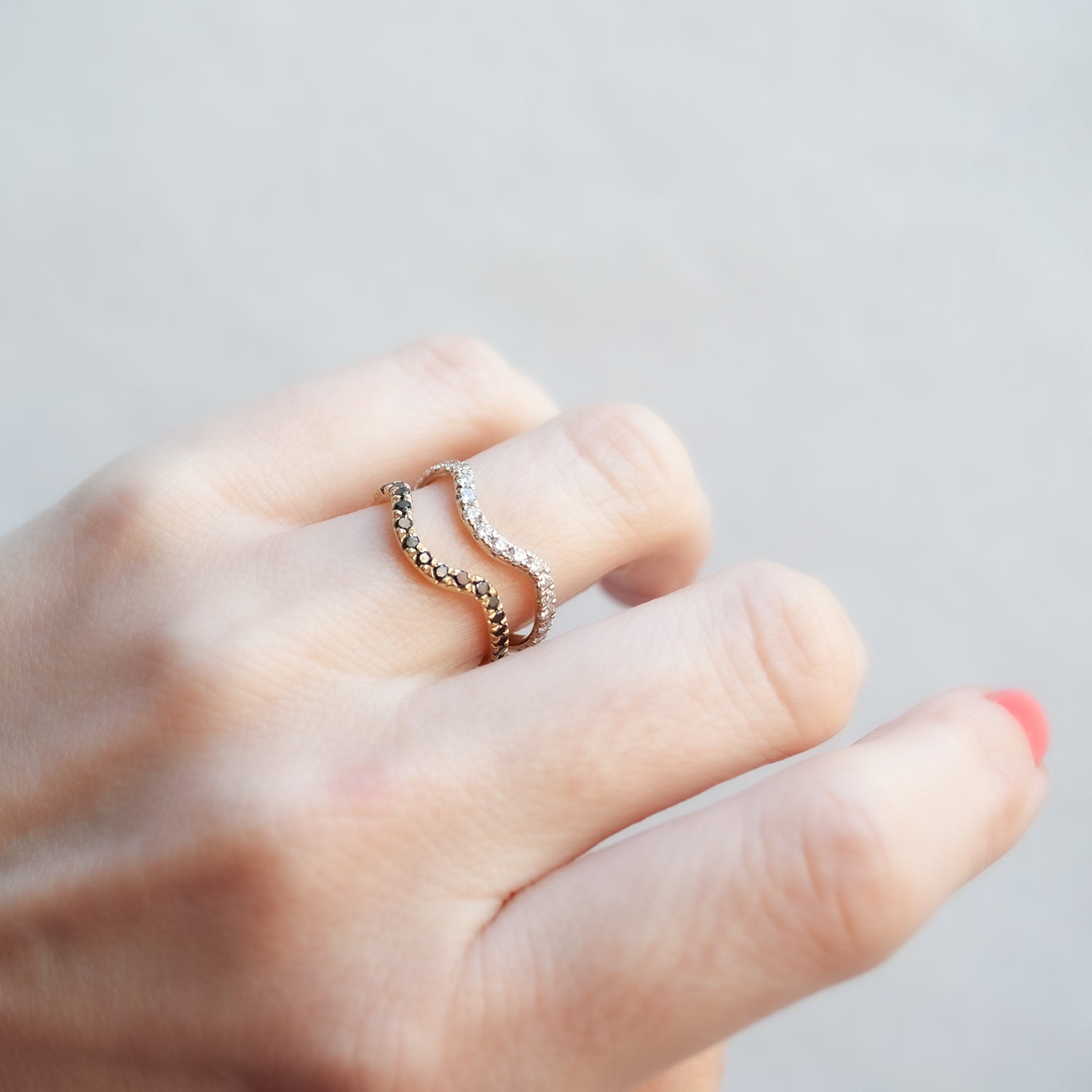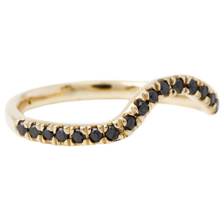 18k yellow gold nesting band with approximate total .18tcw black diamonds. Half eternity band. Band width is 2.7mm.