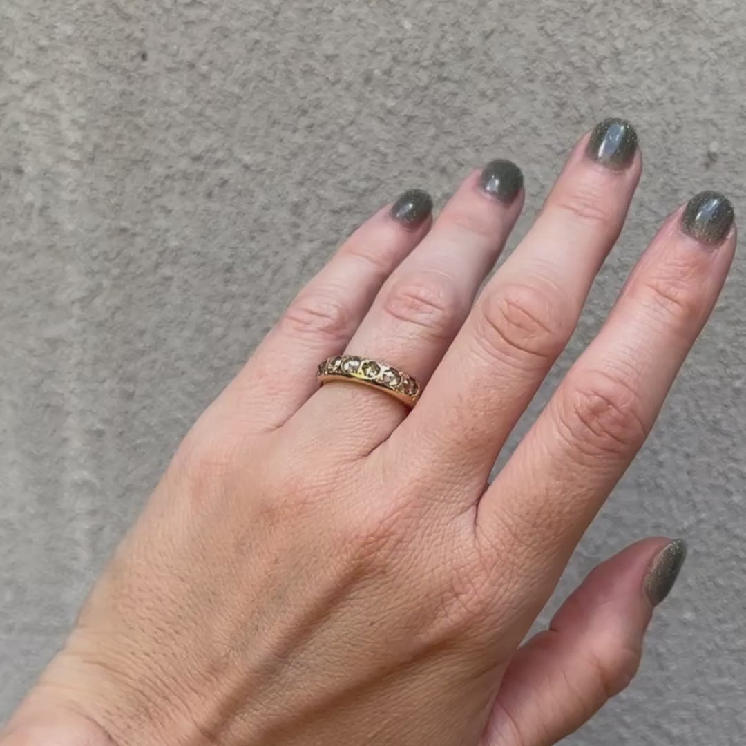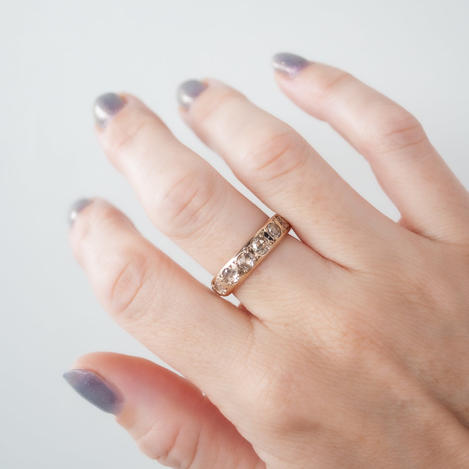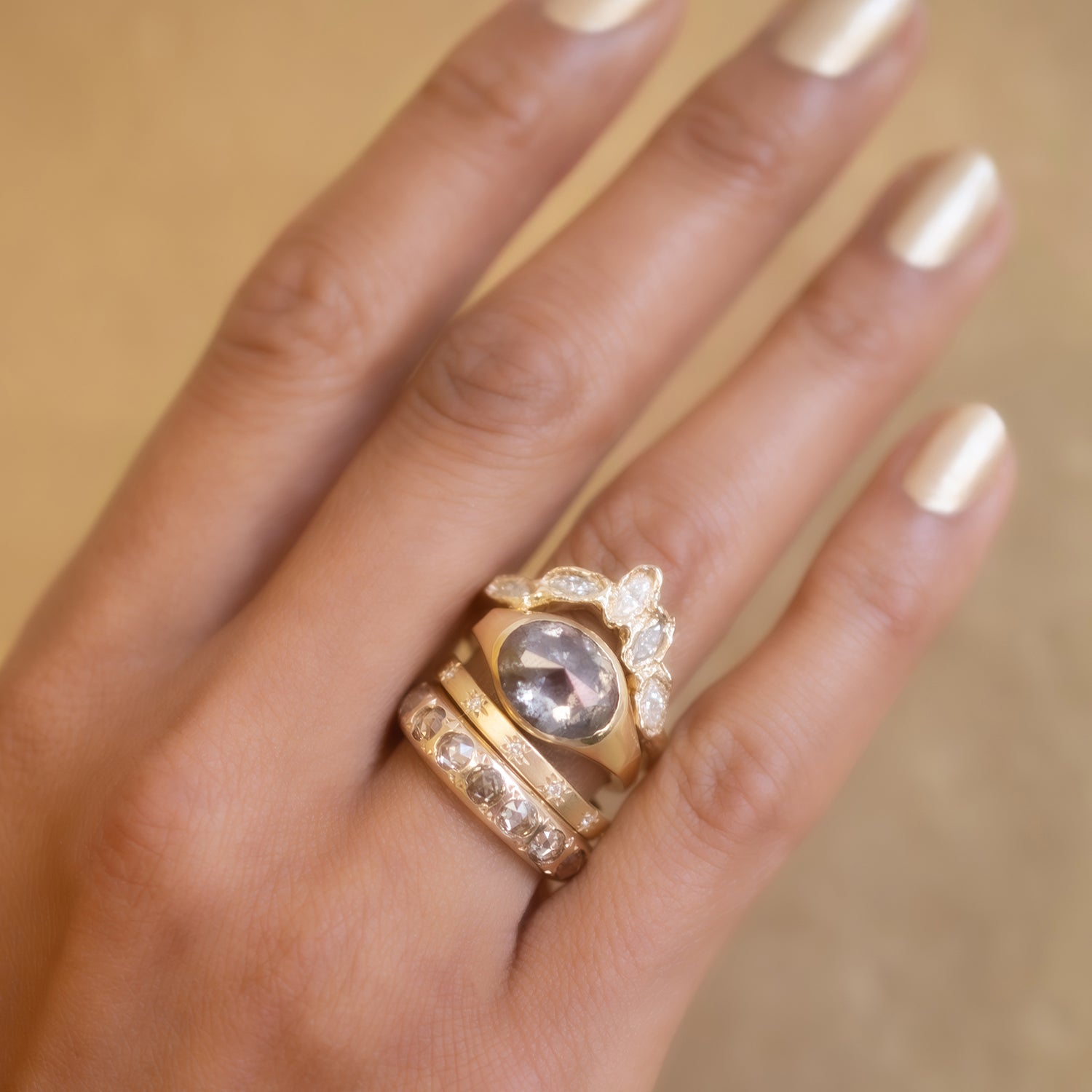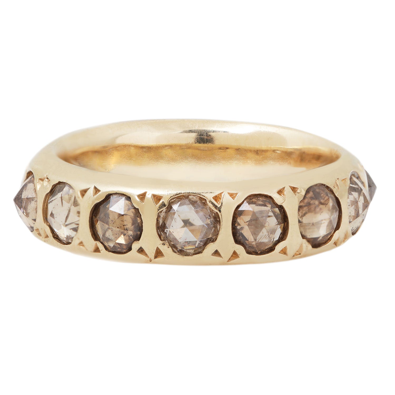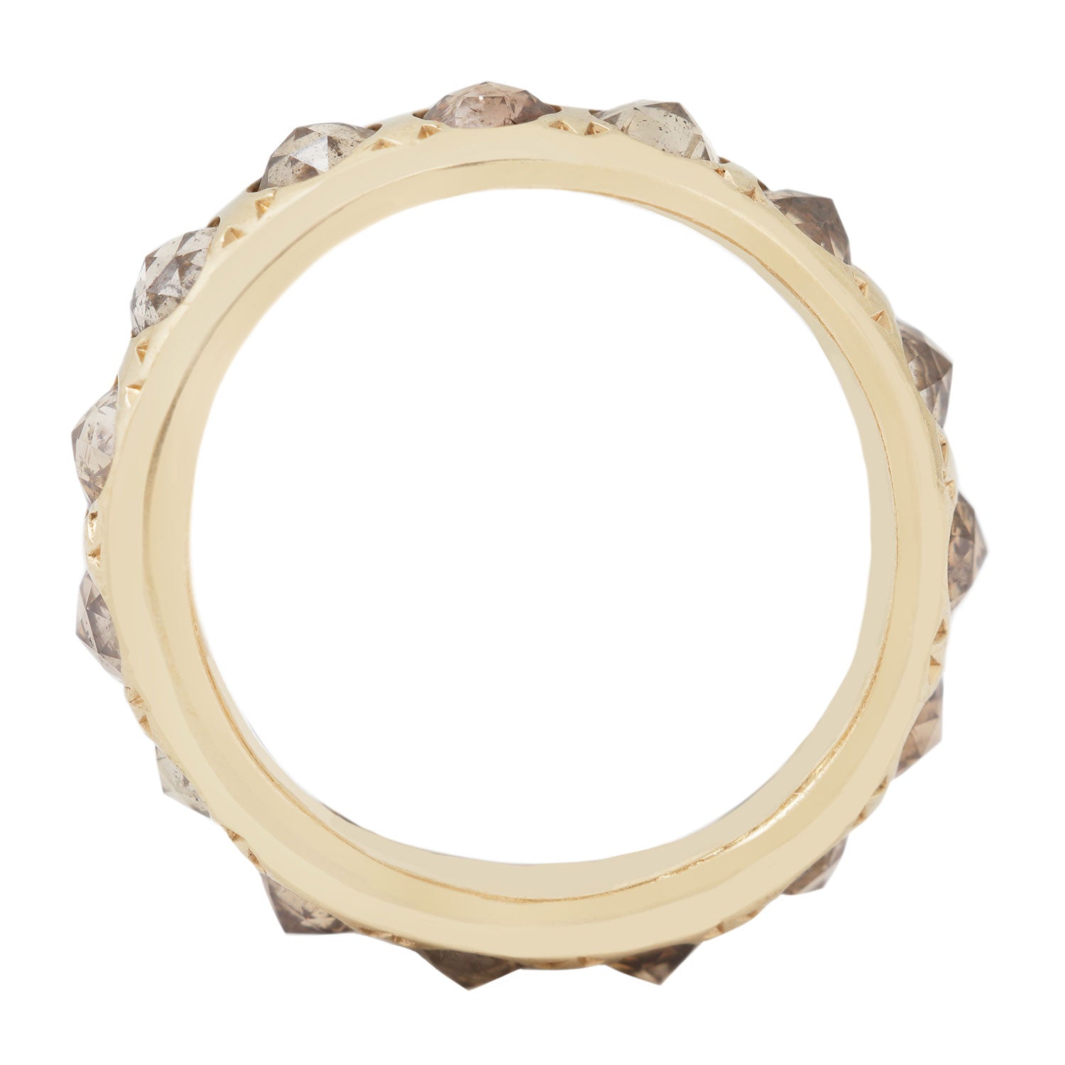 A lusciously thick band houses 1.89tcw of deep and romantic champagne rose cut diamonds all the way around. Each band is handcrafted by Lauren Wolf to be one of a kind; the diamonds and band will differ slightly from the picture.