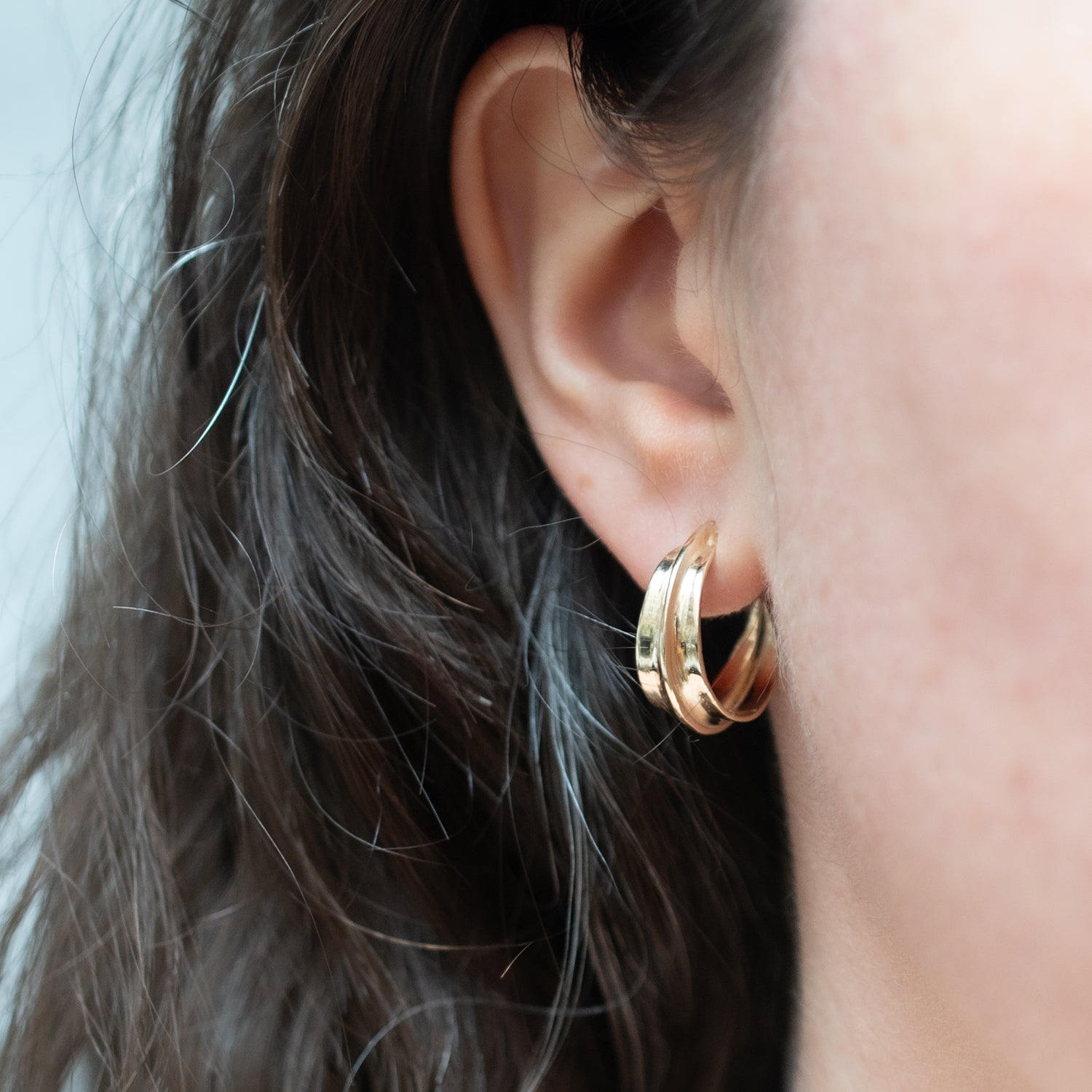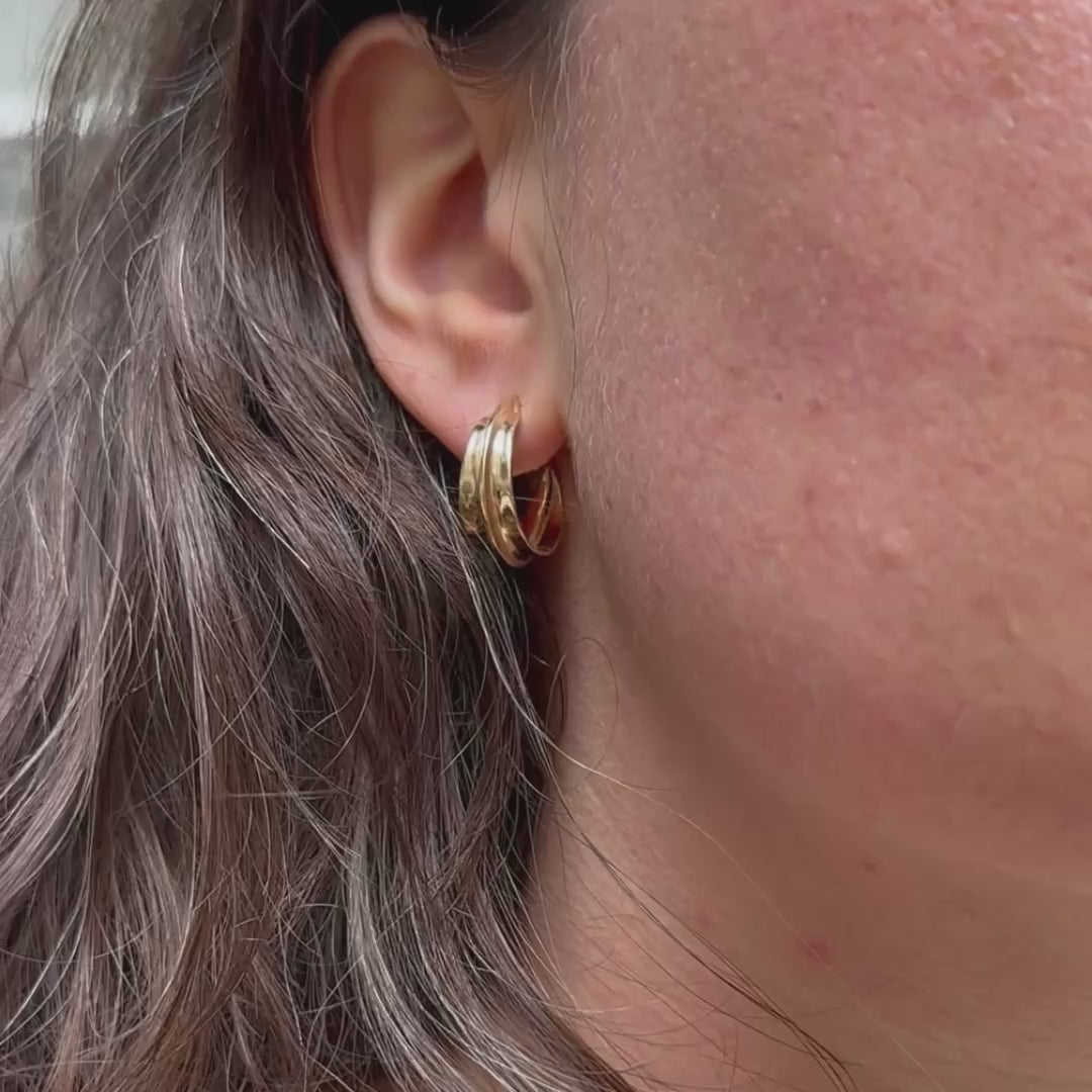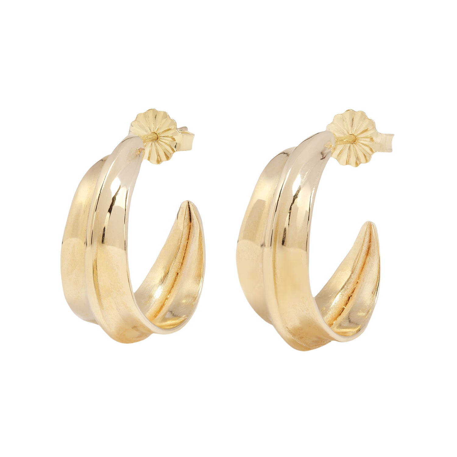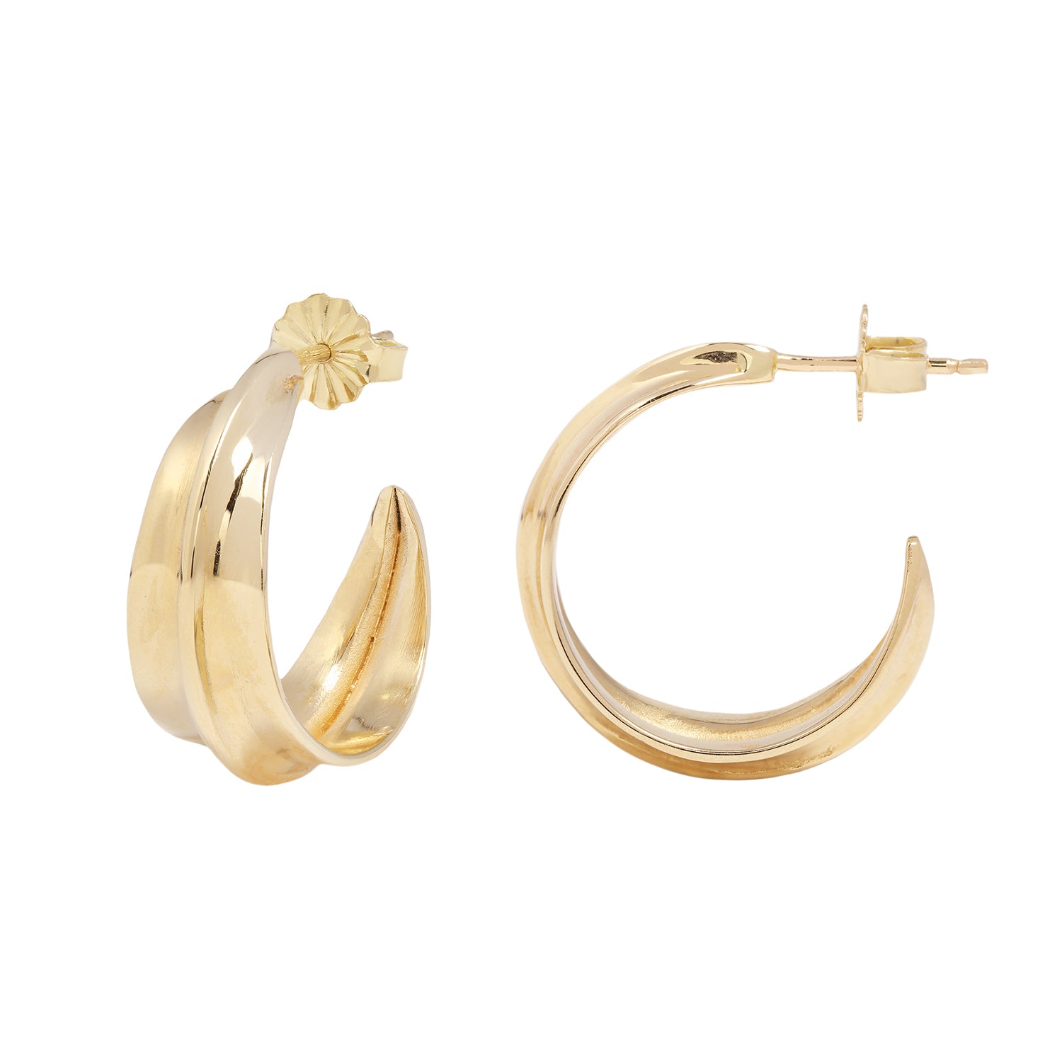 A smaller version of ladha's much-loved Large Sahara Ridge Hoops. These wide gold hoops have a high-shine finish and bold ridge down the center. Handcrafted by ladha to add a punch to your look while being lightweight and effortless.