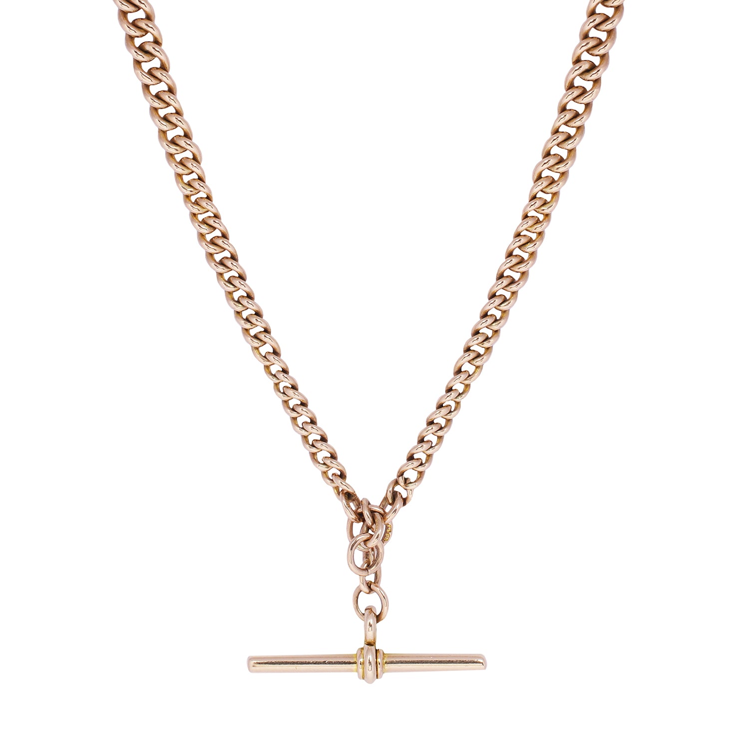 Originally made to hold pocket watches from button holes, this gold Albert chain can also be worn as a necklace. Stamped with its original hallmarks on each link, this piece hails from Birmingham, England, in the 1910s. This antique chain is one of a kind.