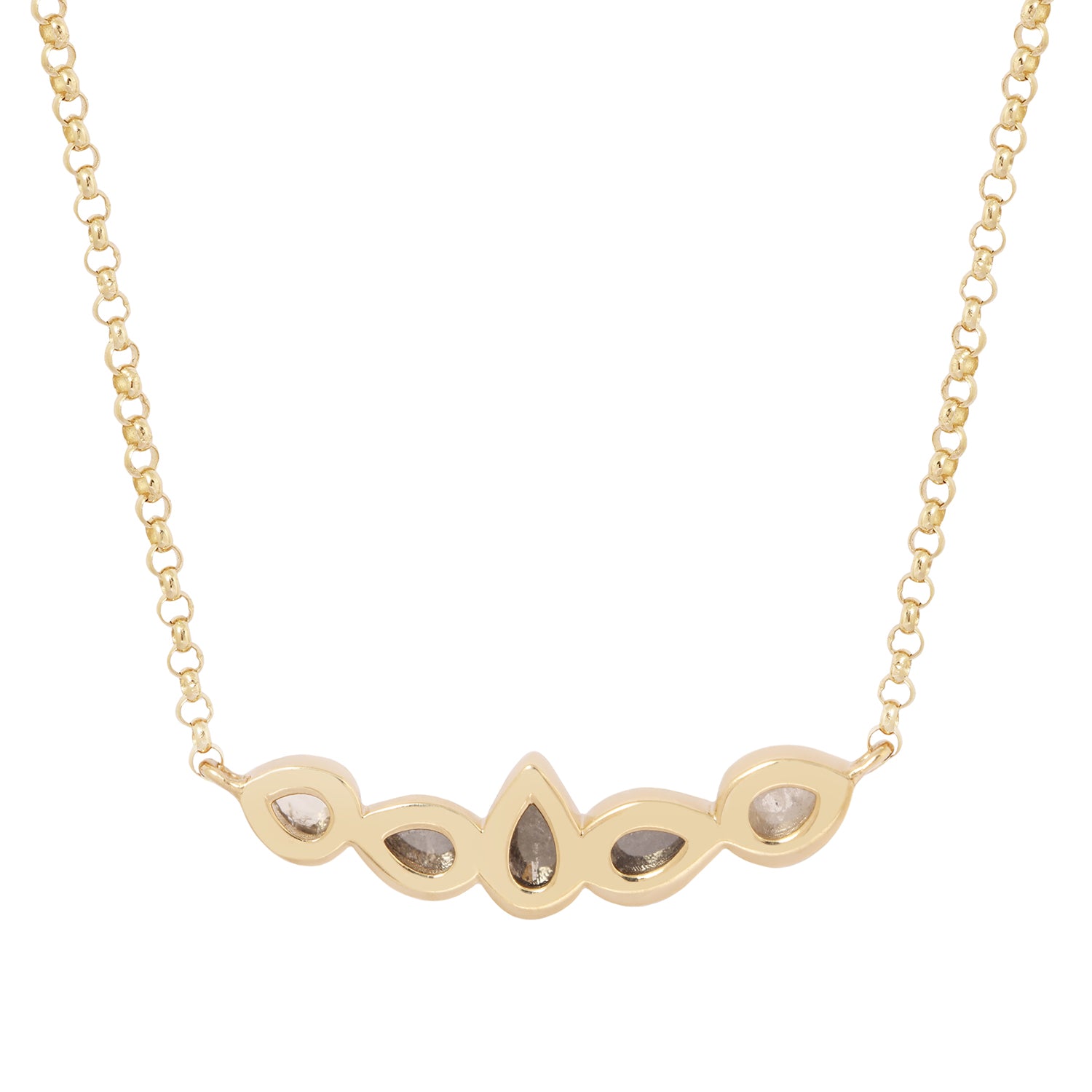 Five pear-shaped moody salt & pepper diamonds mix together perfectly in this necklace by Lauren Wolf Jewelry. This one-of-a-kind bezel set diamond necklace is great for layering, although it sparkles enough to wear on its own.