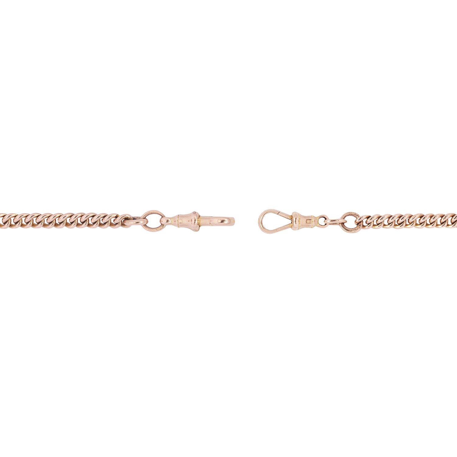 Originally made to hold pocket watches from button holes, this gold Albert chain can also be worn as a necklace. Stamped with its original hallmarks on each link and T-bar, this piece hails from Birmingham, England, in the early 1900s. This antique chain is one of a kind.