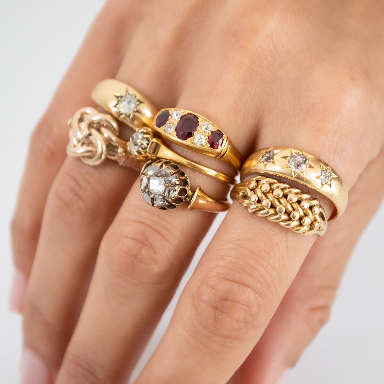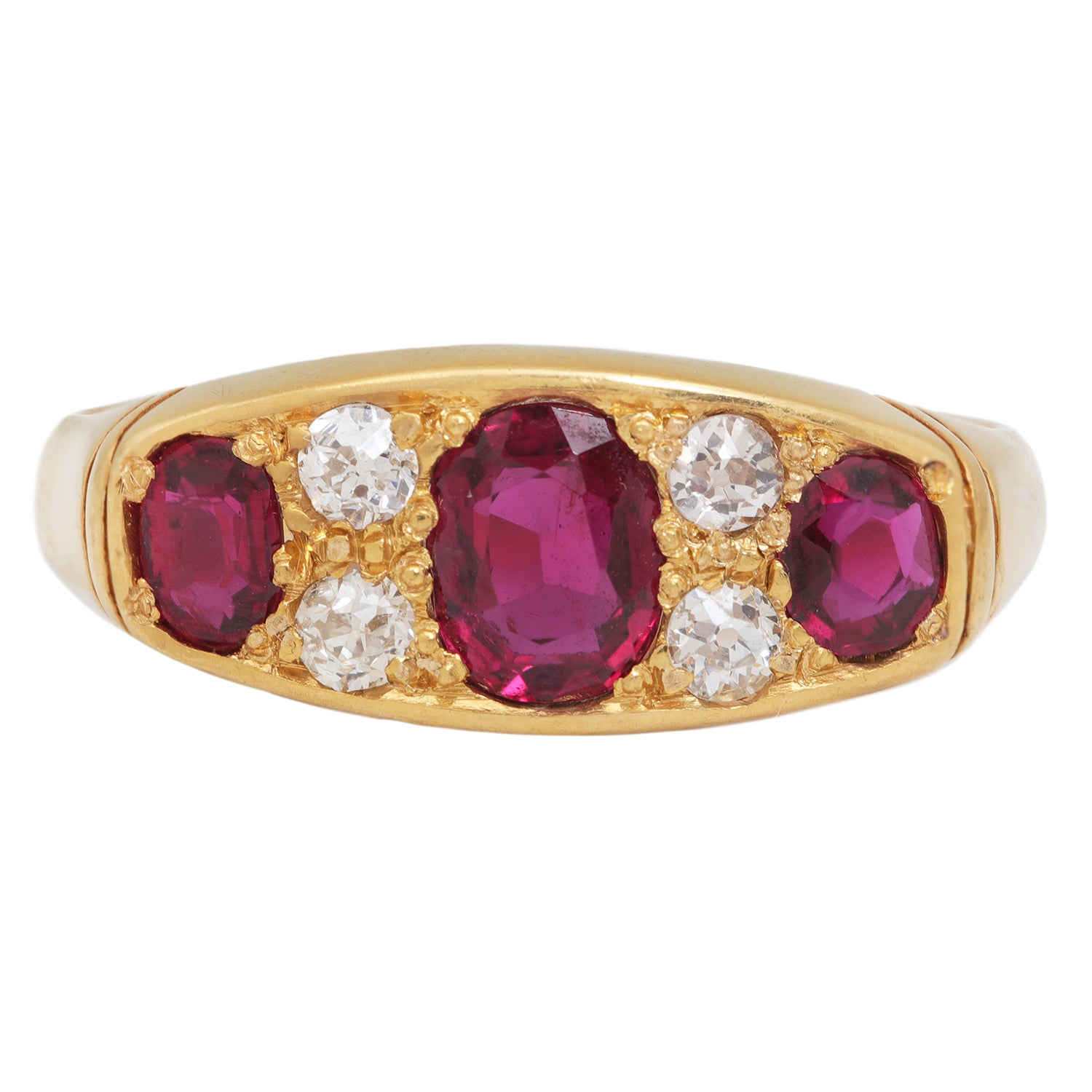 The Ruby Radiance Half Hoop Ring is a unique antique masterpiece hailing from Chester, England in 1909. This one-of-a-kind ring boasts a mesmerizing combination of rubies and diamonds set in a half-hoop design. The rubies, with their super deep red hue, complement the sparkling diamonds for an enchanting glow. Adorned with original hallmark stamps, this ring exudes authenticity and charm.
