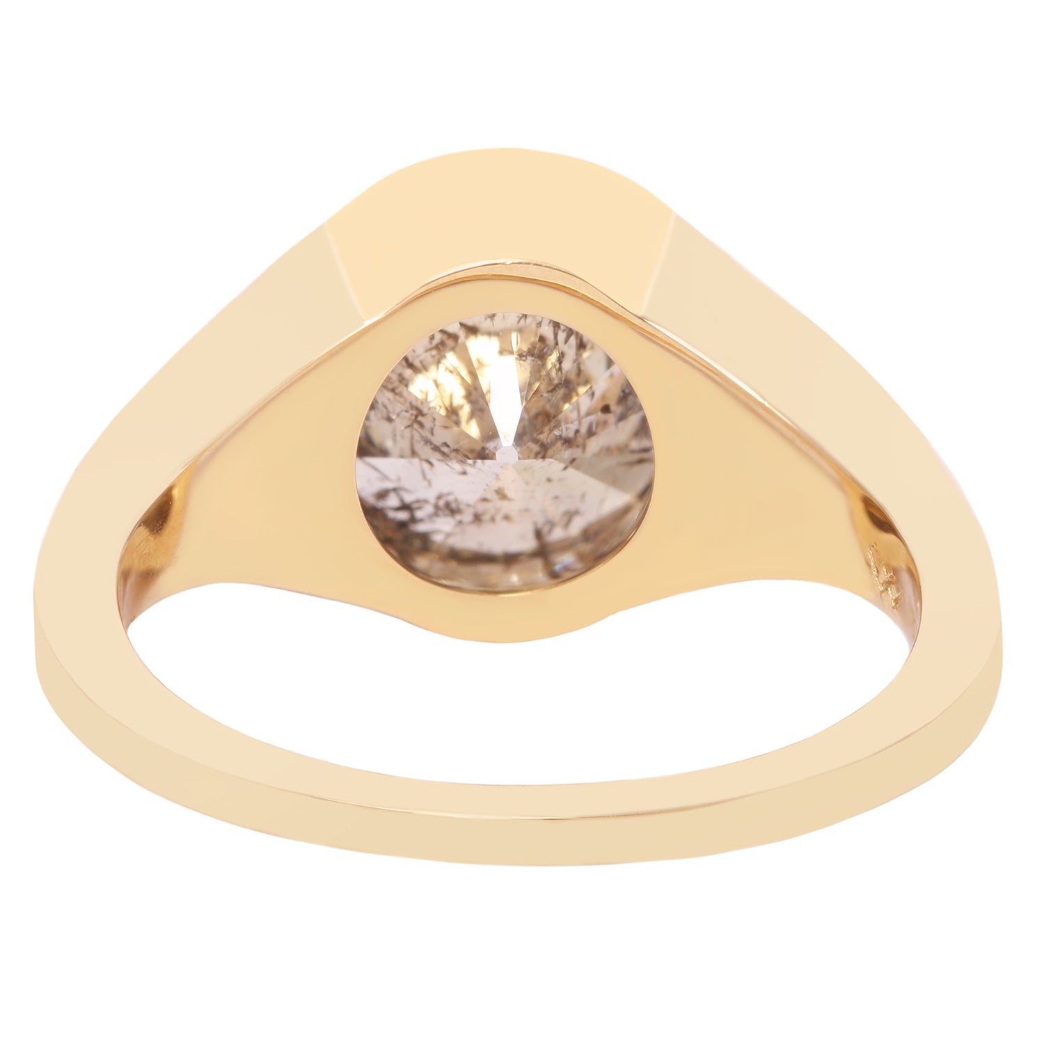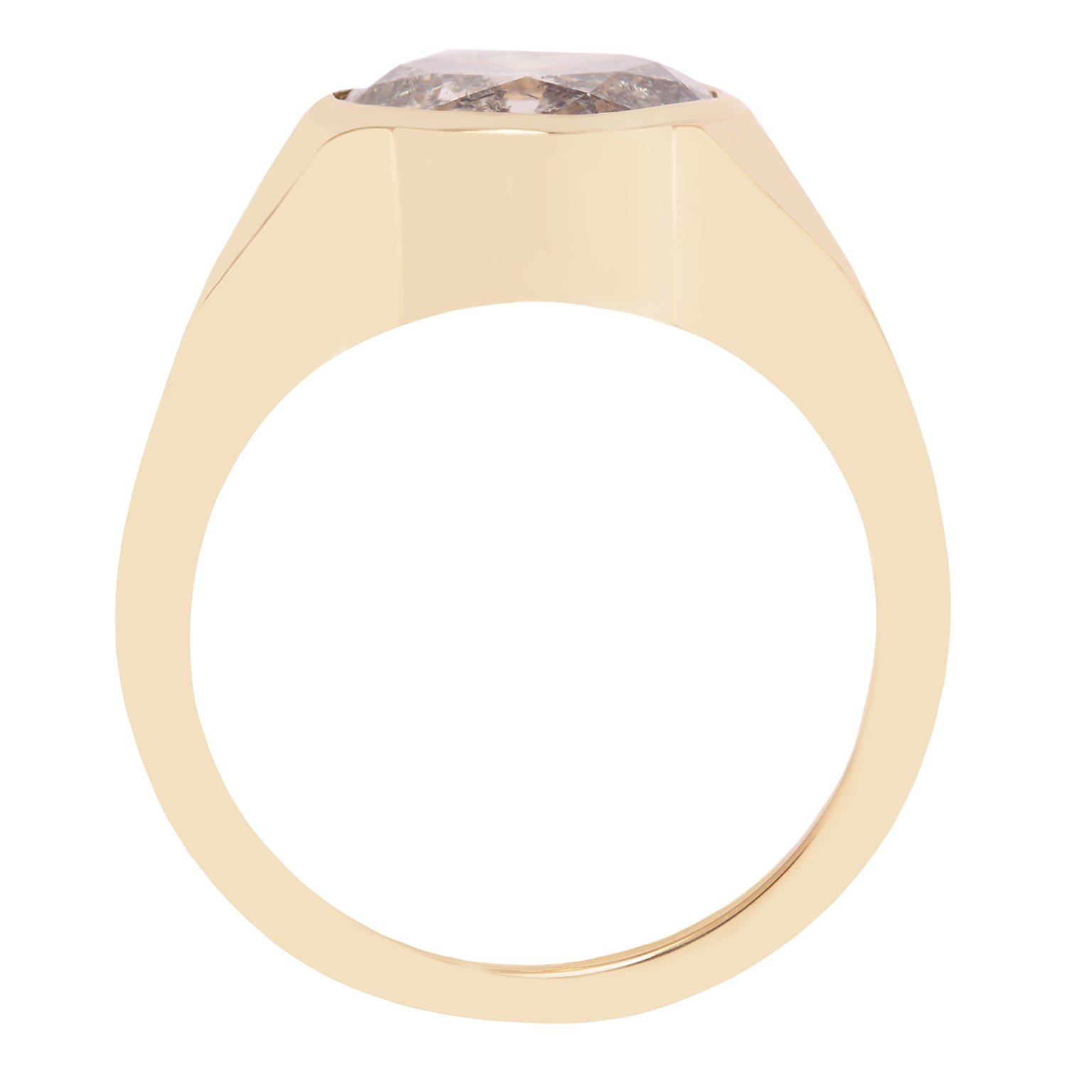 This Lauren Wolf Jewelry creation presents a speckled diamond signet whose surface recalls the scattered brilliance of a celestial night. The heavy weight signet style is a modern classic with a large stone in a flush setting. Appraisal available upon request.