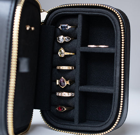 Tiny octagon ring with a 4mm black spinel set in 14k yellow gold. Available in champagne quartz, tourmalinated quartz, opal, ruby and yellow rutilated quartz.