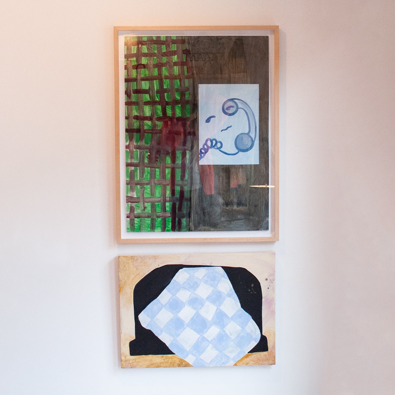 Together is an original framed artwork on paper by London-based artist Sophie Lourdes Knight. Sophie uses acrylics and a variety of tools to build a narrative arc with each of her paintings. Isolated space exudes expectant energy and her loose objects and characters depict themes of familiarity, sentiment, and the bizarre.